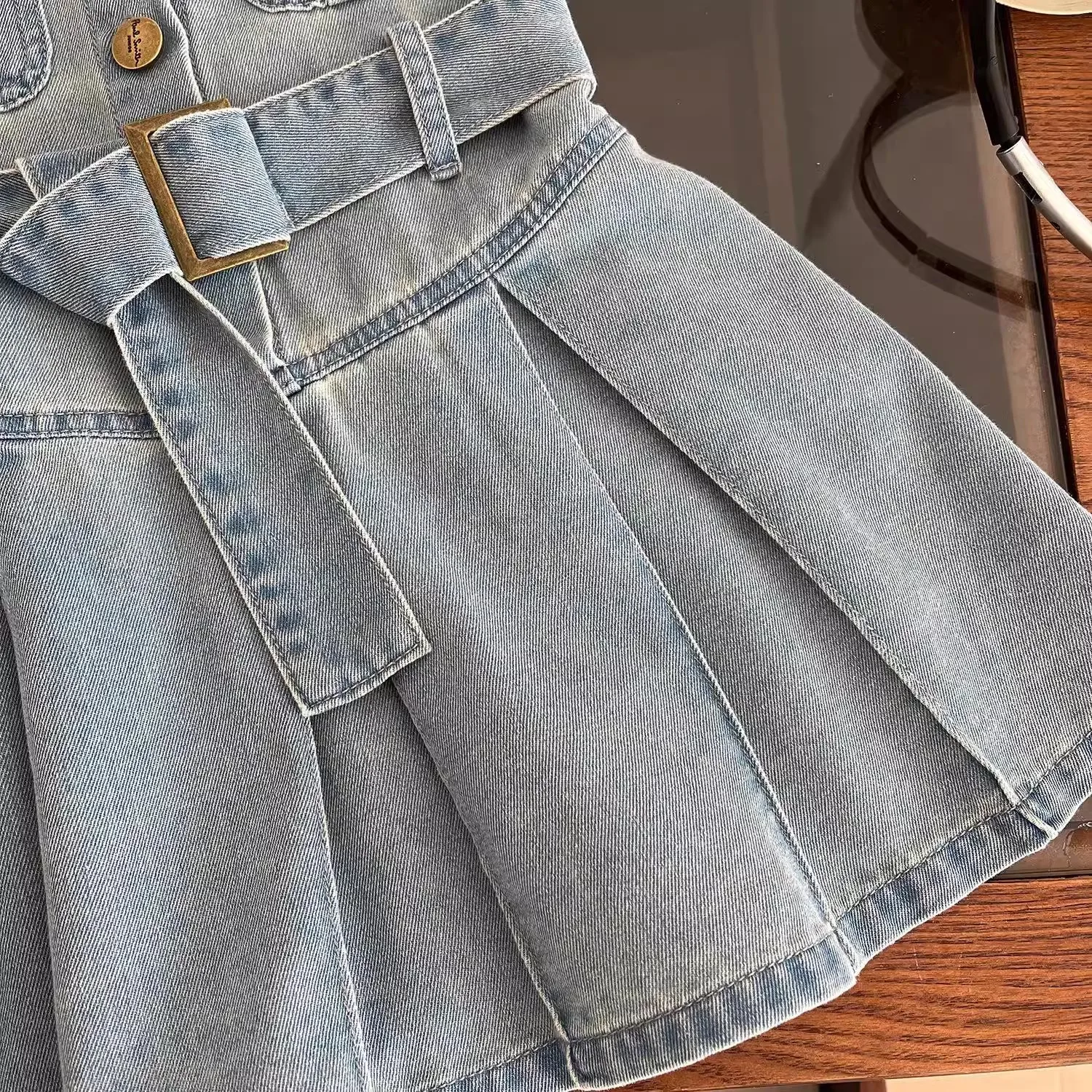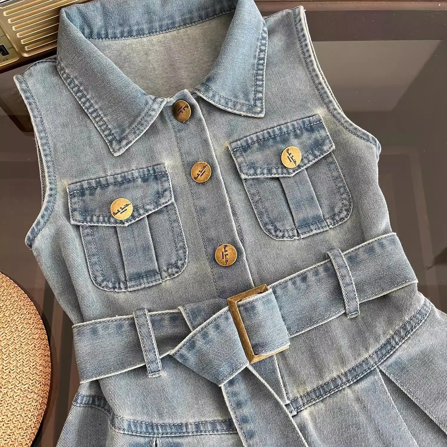 فستان بناتي صيف 2025 سترة كورية جديدة للأطفال بدون أكمام تنورة الأميرة تنورة الصيف الغربية من قماش الدنيم