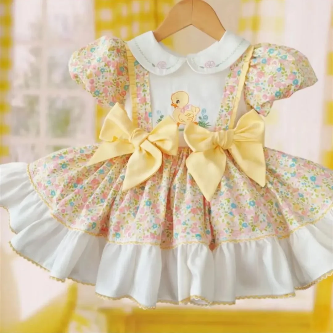 فستان تطريز البط الأصفر الزهري ، فستان حفلة لوليتا الأميرة الكلاسيكي ، ثوب تركي لعيد الميلاد والعطلات ، عيد ، فتاة 0-12 عام ، الصيف