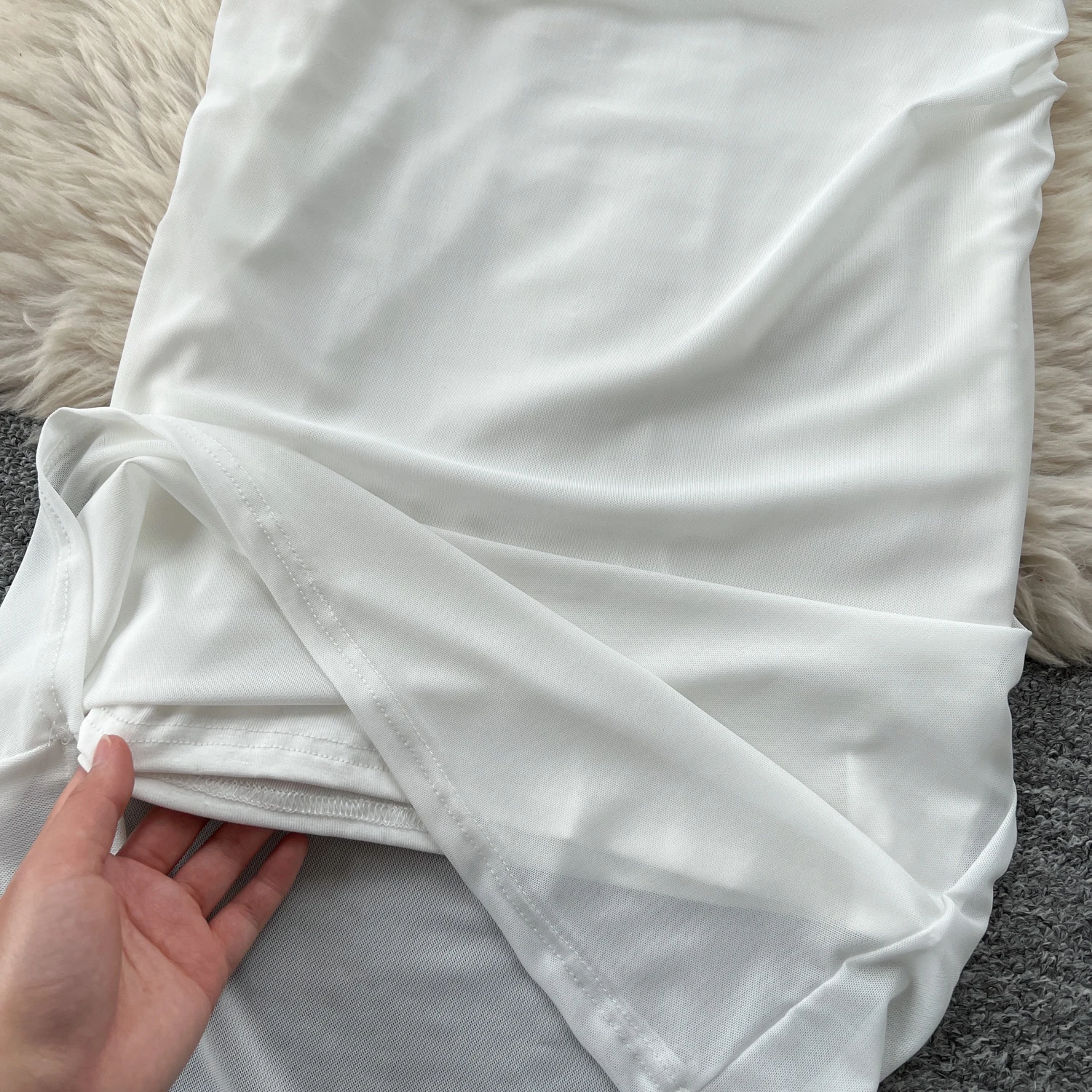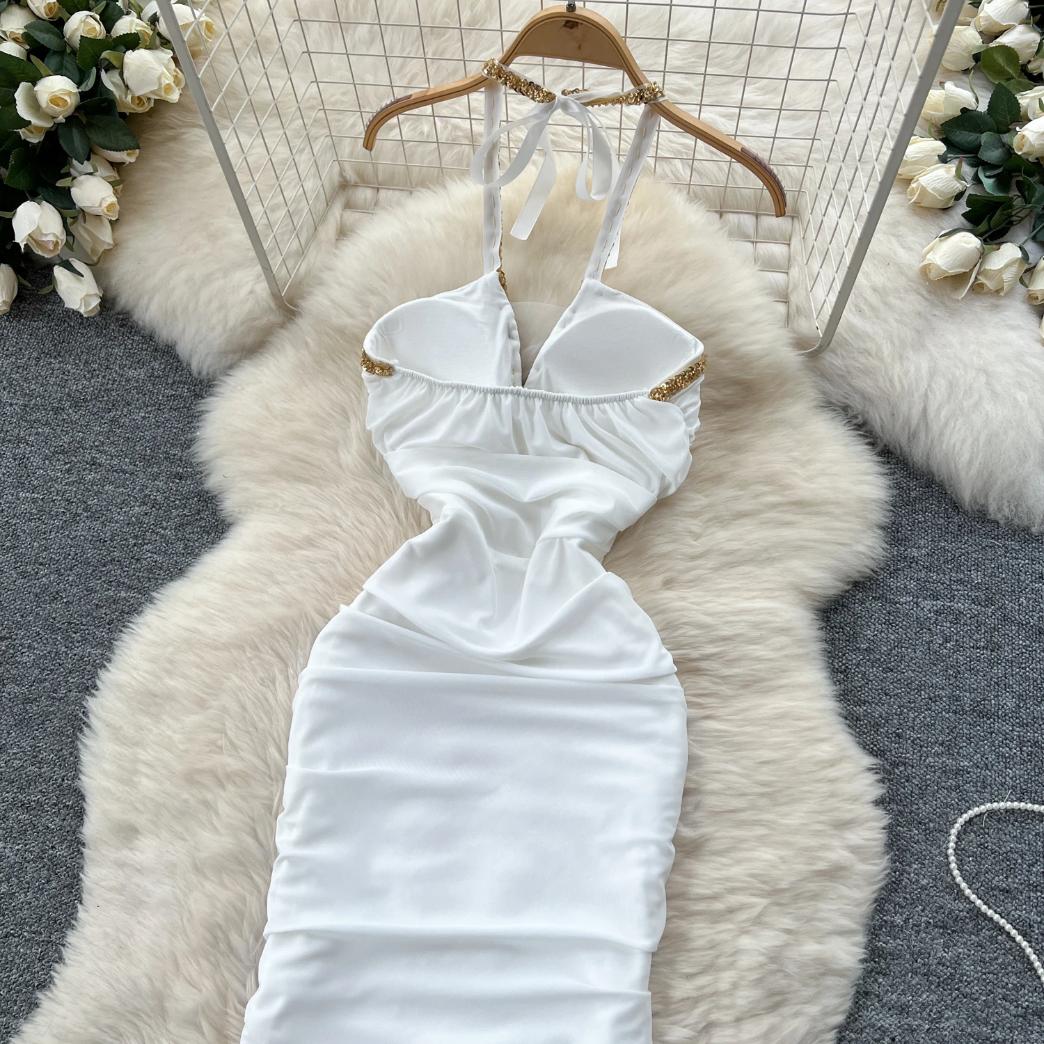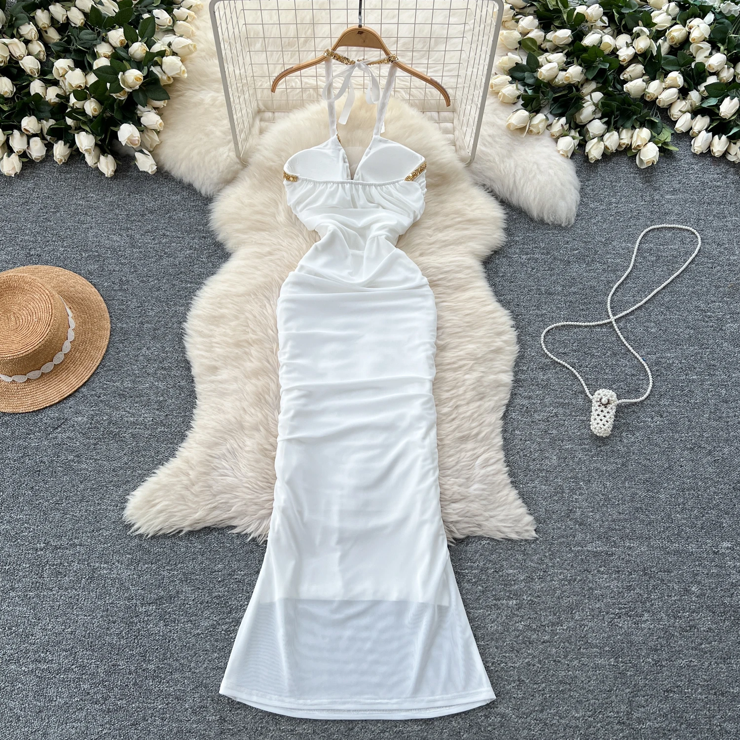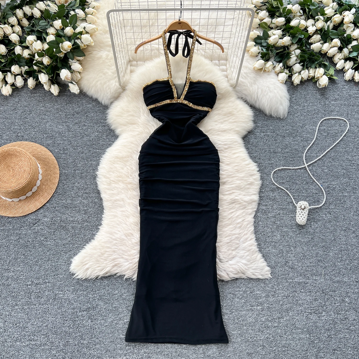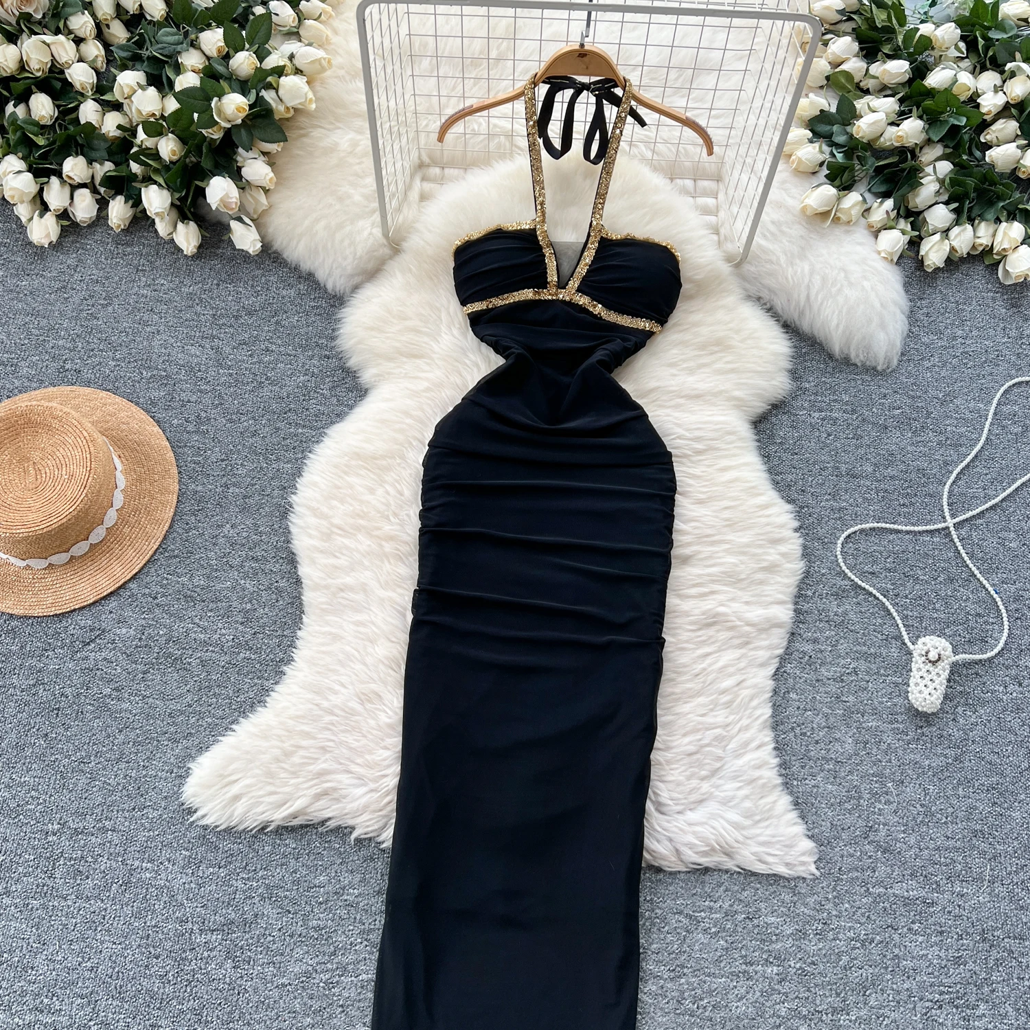 فستان شبكي مثير مزين بالترتر بدون أكتاف مرن نحيف Bodycon أنيق للحفلات والنوادي ميدي فيستدوس عتيق بأشرطة بوهو للنساء
