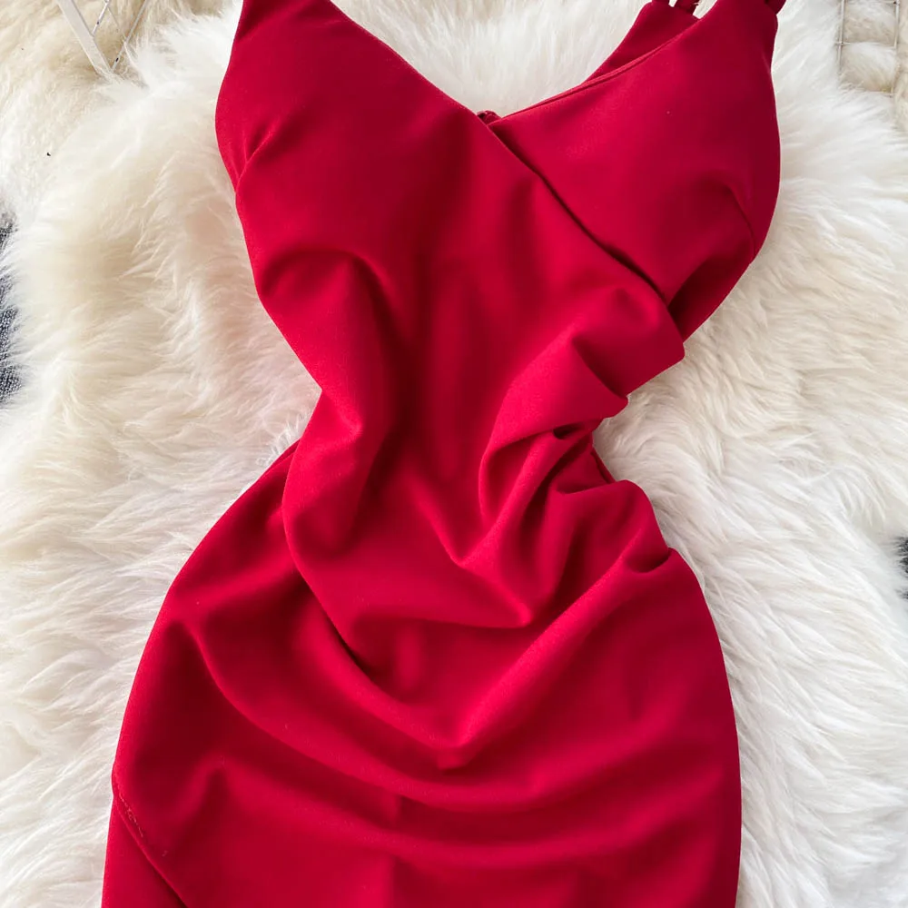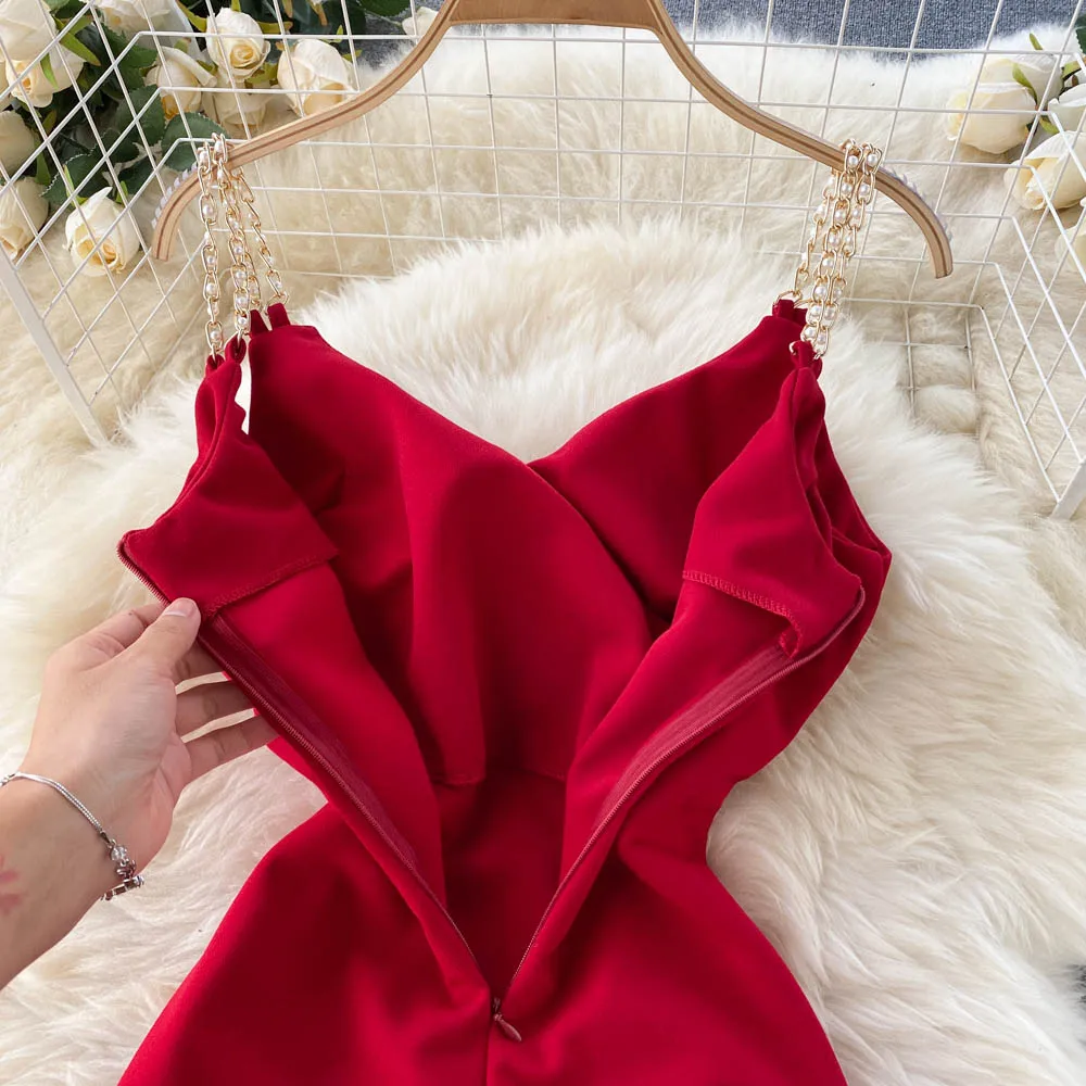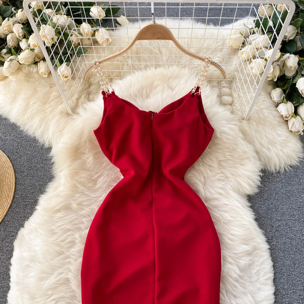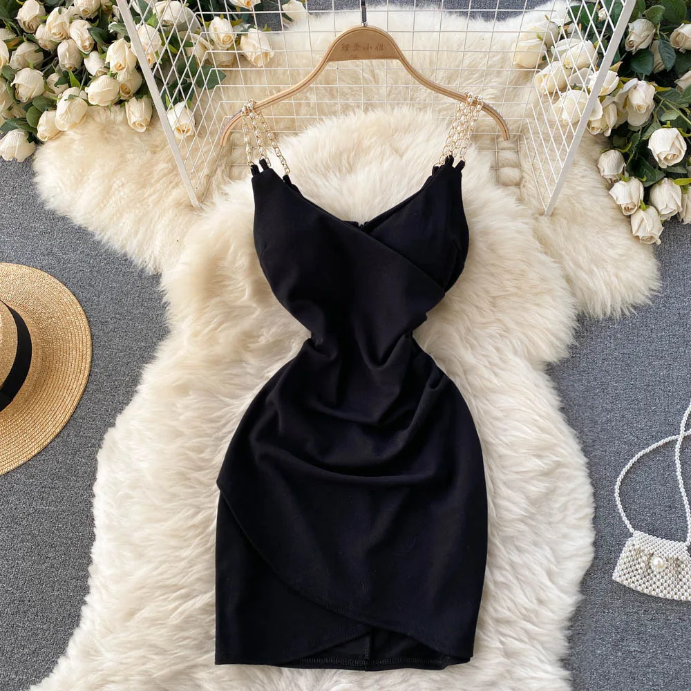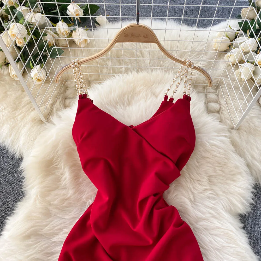فستان نسائي براق بفتحة رقبة على شكل حرف V ، فستان حفلة بطيات ضيقة ، فستان نسائي قصير مثير ، سلاسل ، صيف ، جديد