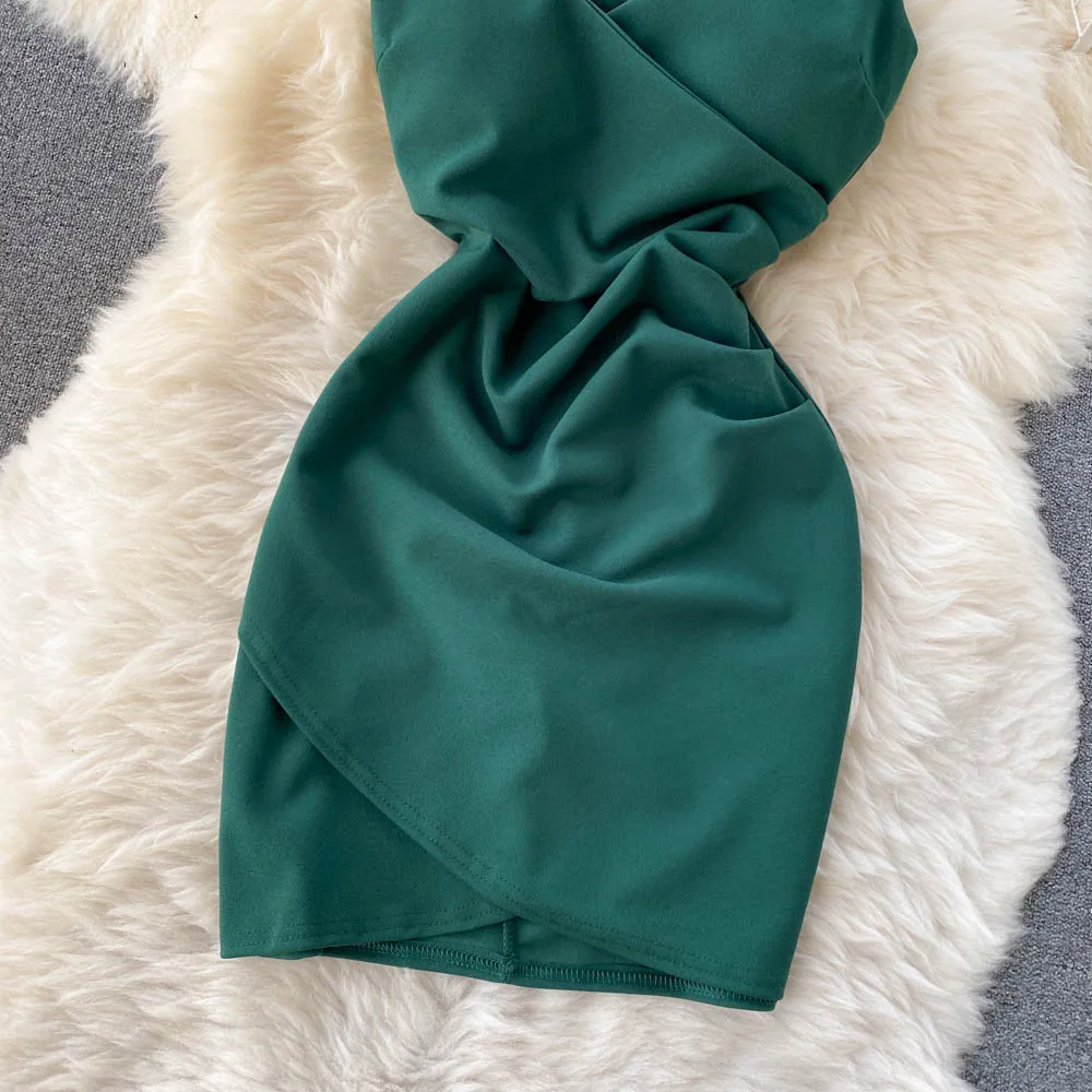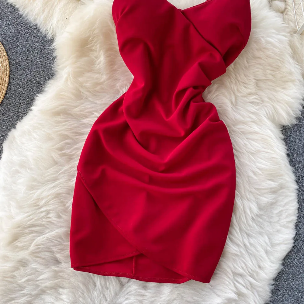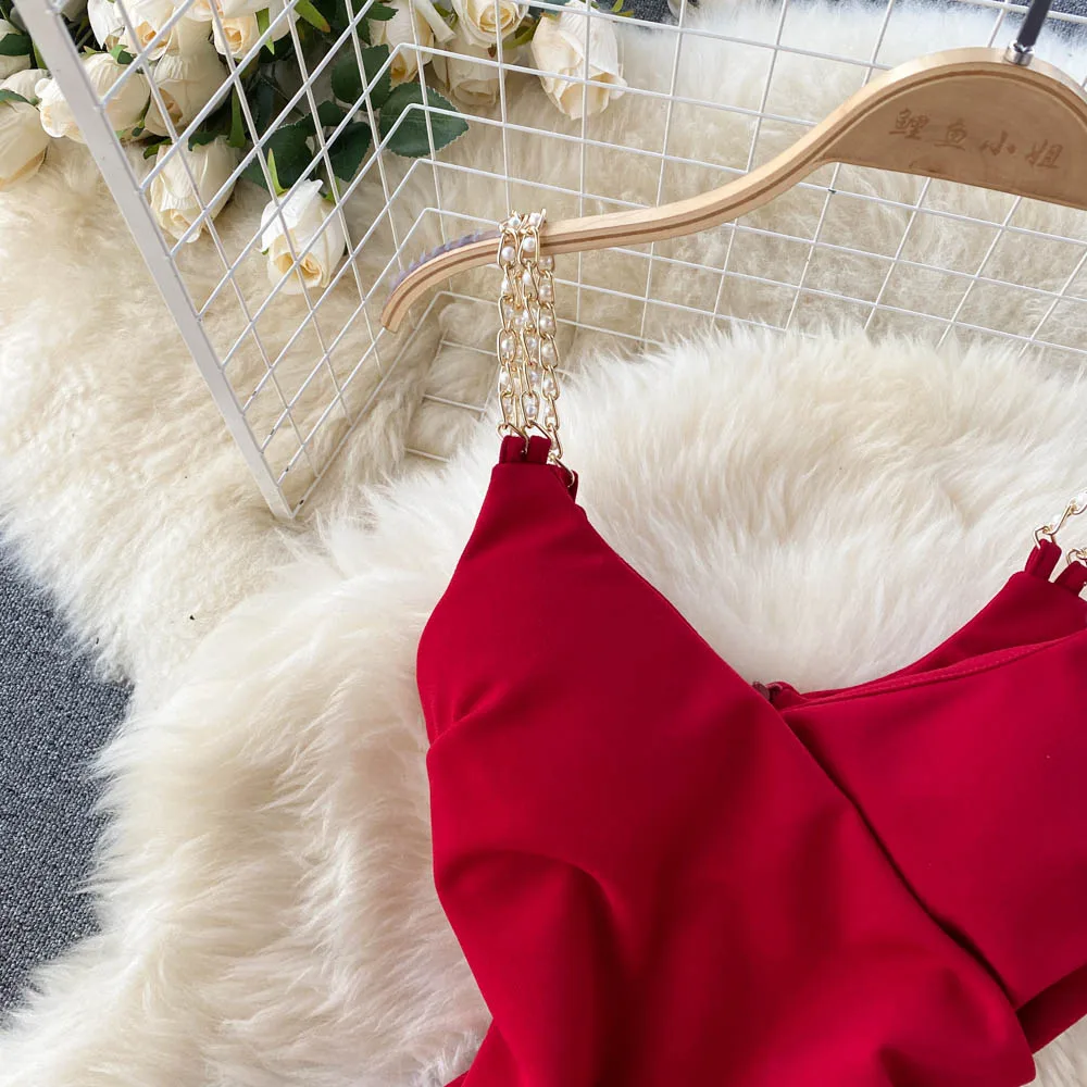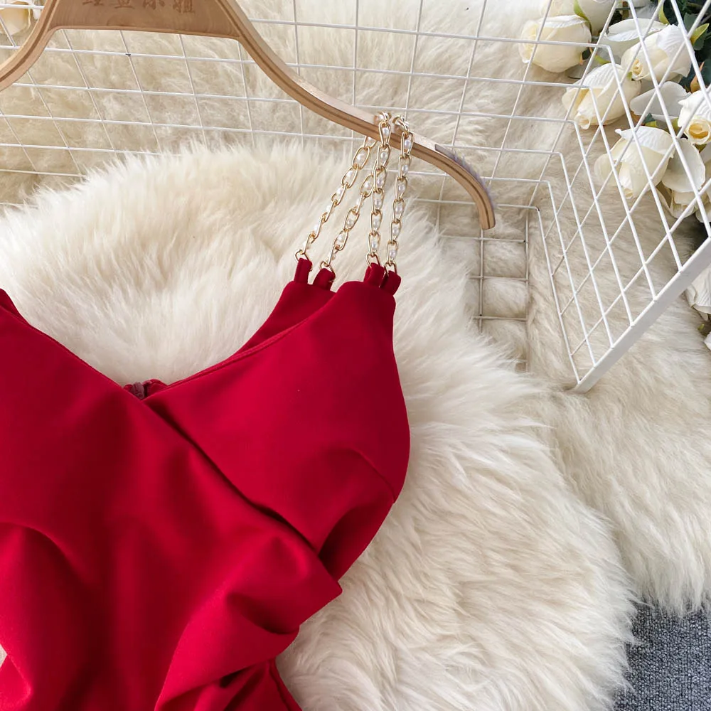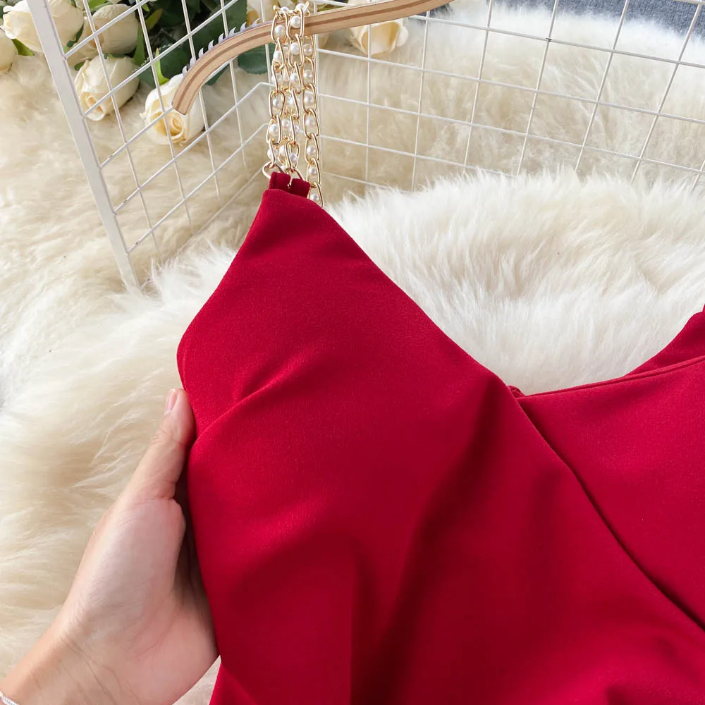 فستان نسائي براق بفتحة رقبة على شكل حرف V ، فستان حفلة بطيات ضيقة ، فستان نسائي قصير مثير ، سلاسل ، صيف ، جديد