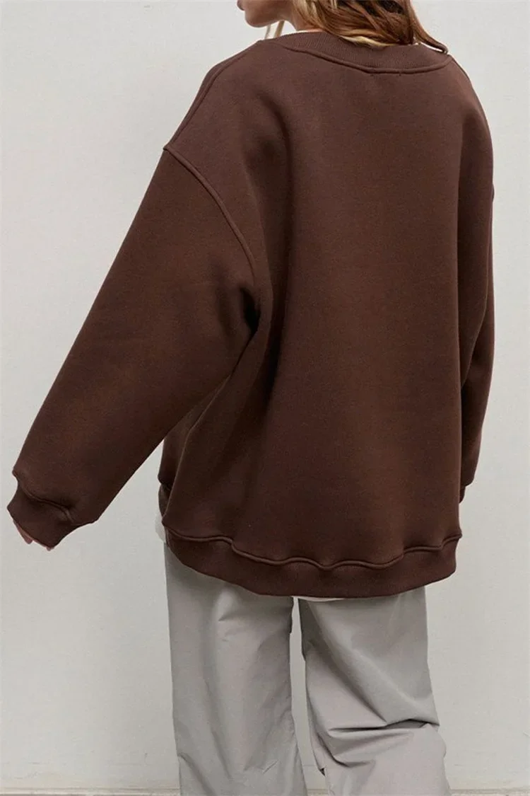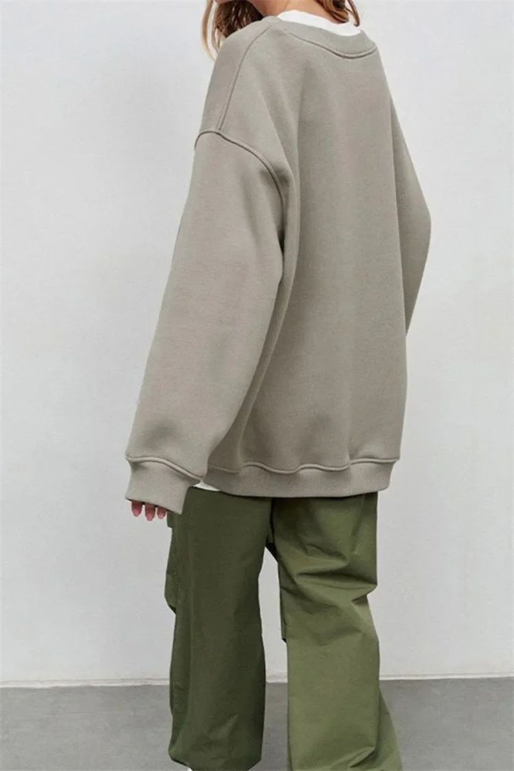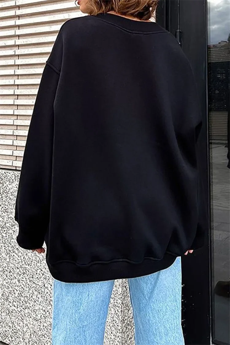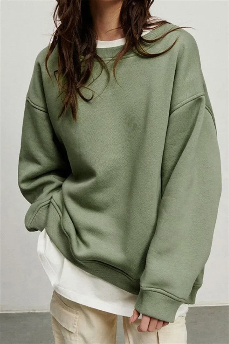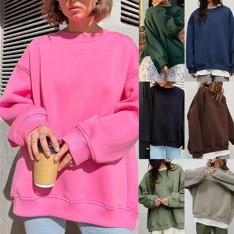 فضفاضة تناسب طويلة الأكمام جولة الرقبة البلوز هوديي المرأة نمط بلون الخريف الشتاء وصول جديد مريحة القطن Sweatshi