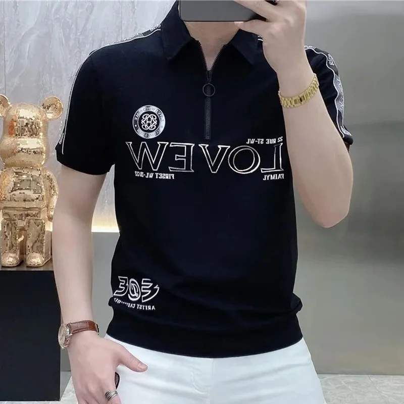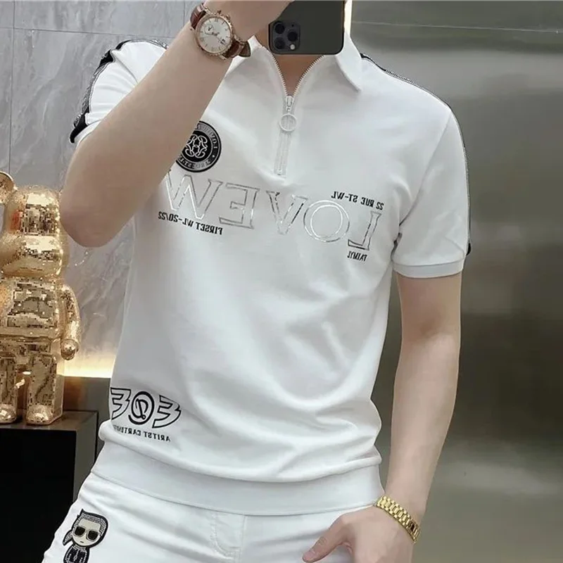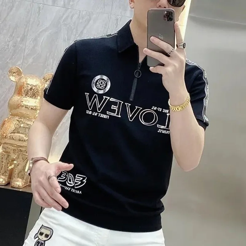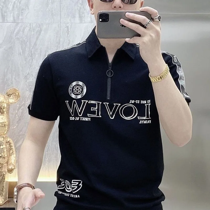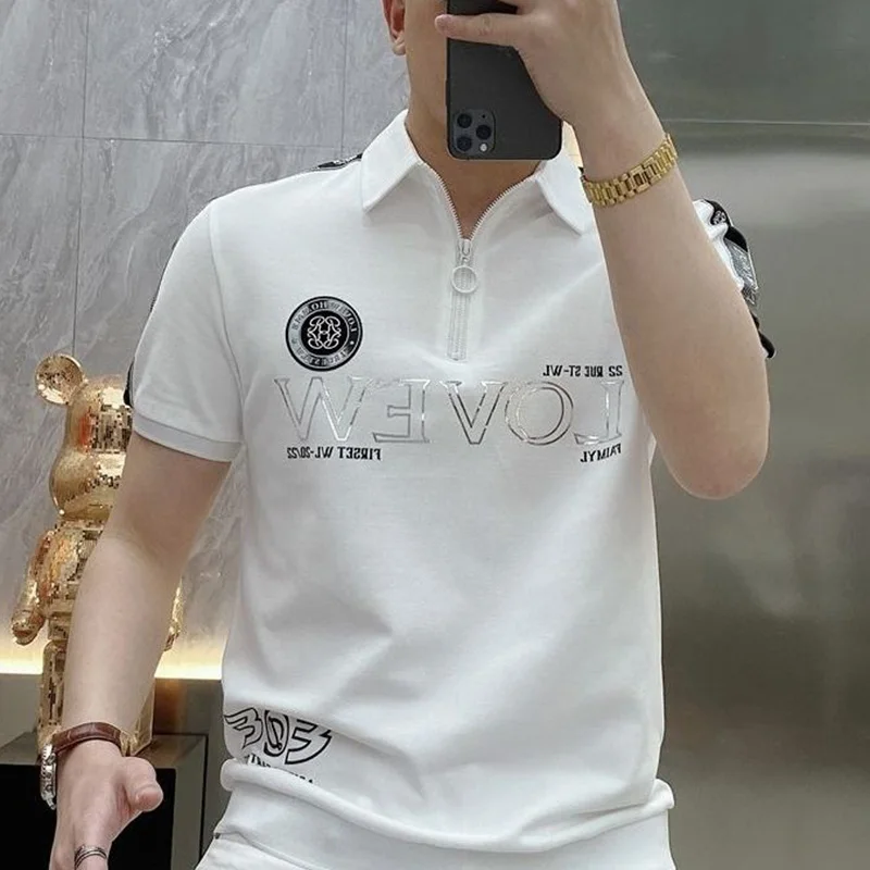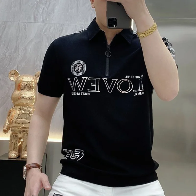 قمصان بولو منقوشة بسحّاب فضفاضة على الموضة ملابس رجالية لصيف 2023 بلوفرات غير رسمية كبيرة الحجم جديدة تي شيرت مناسب لجميع المباريات