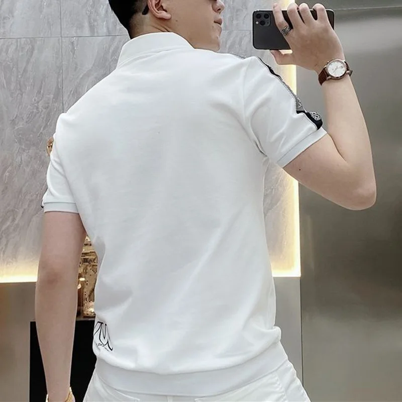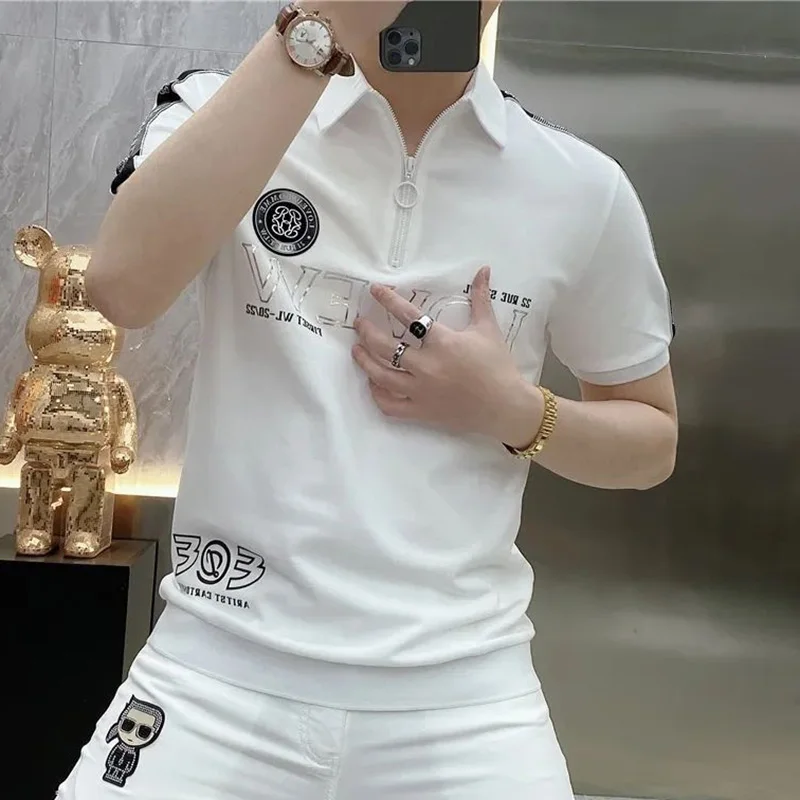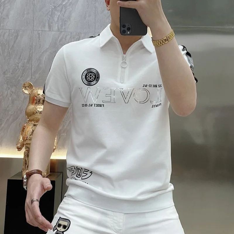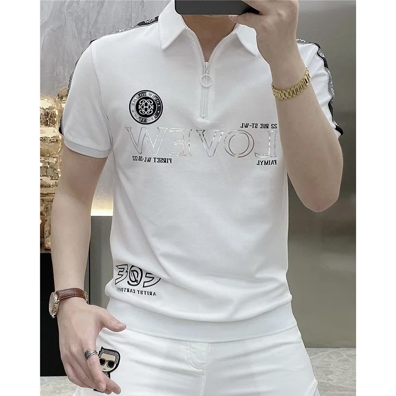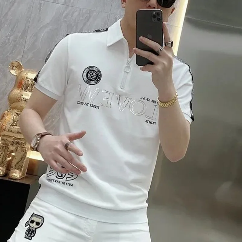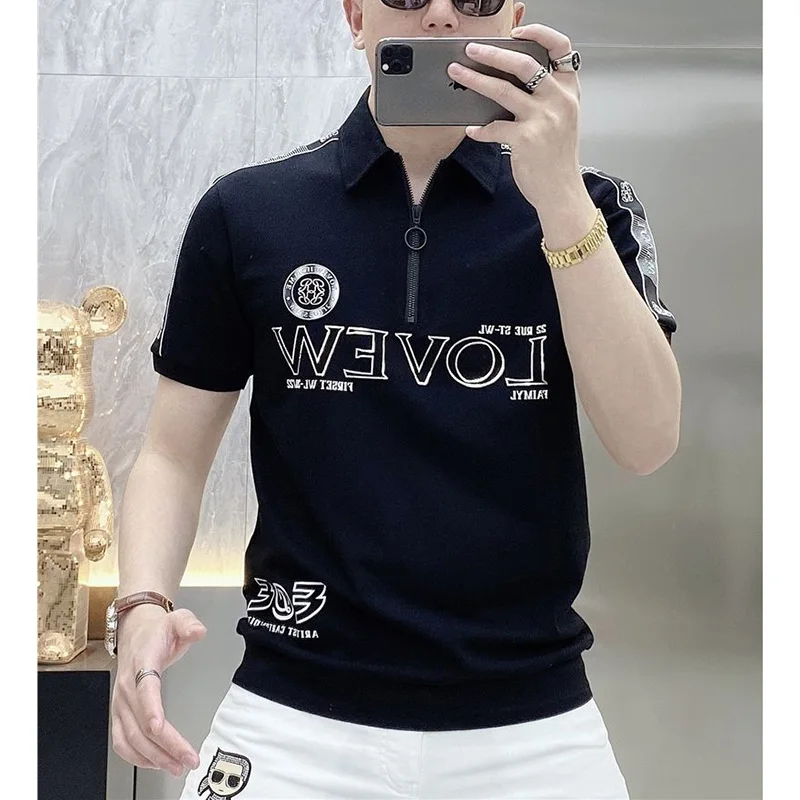 قمصان بولو منقوشة بسحّاب فضفاضة على الموضة ملابس رجالية لصيف 2023 بلوفرات غير رسمية كبيرة الحجم جديدة تي شيرت مناسب لجميع المباريات