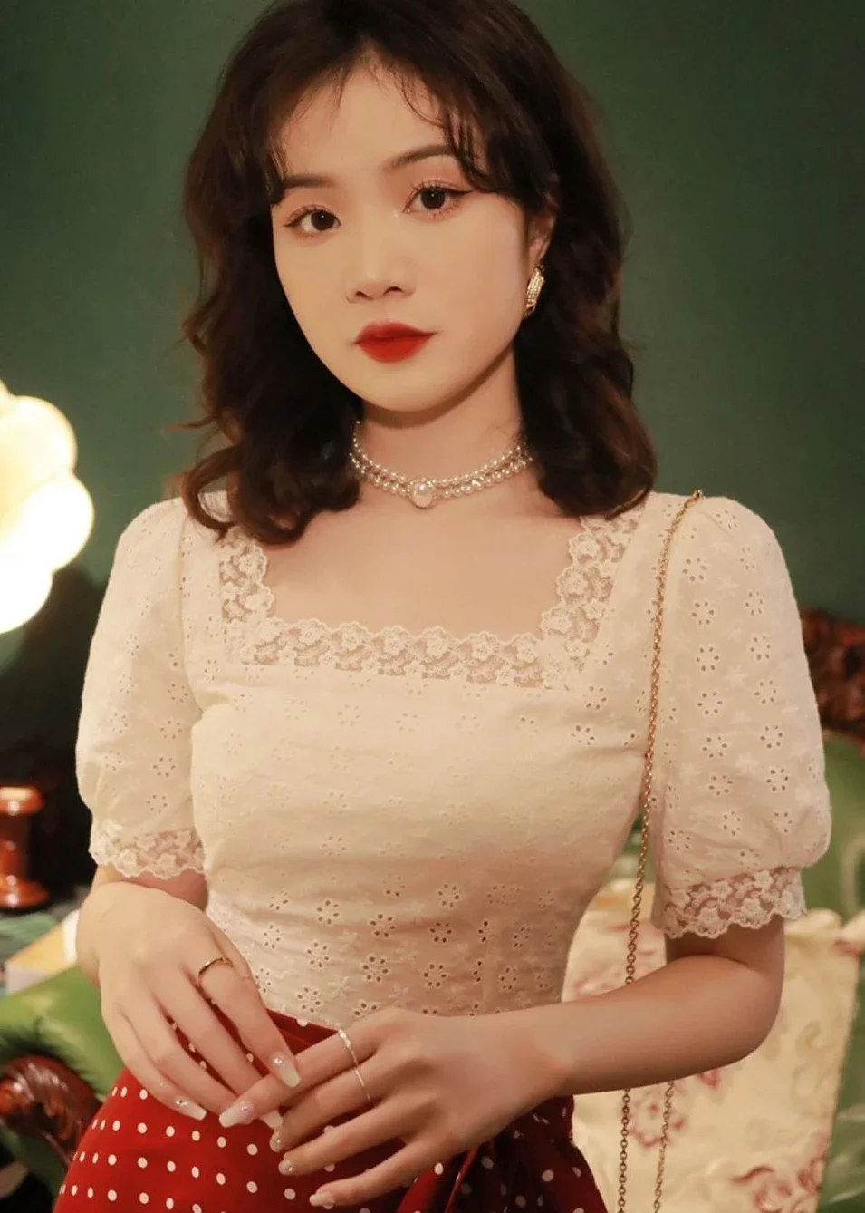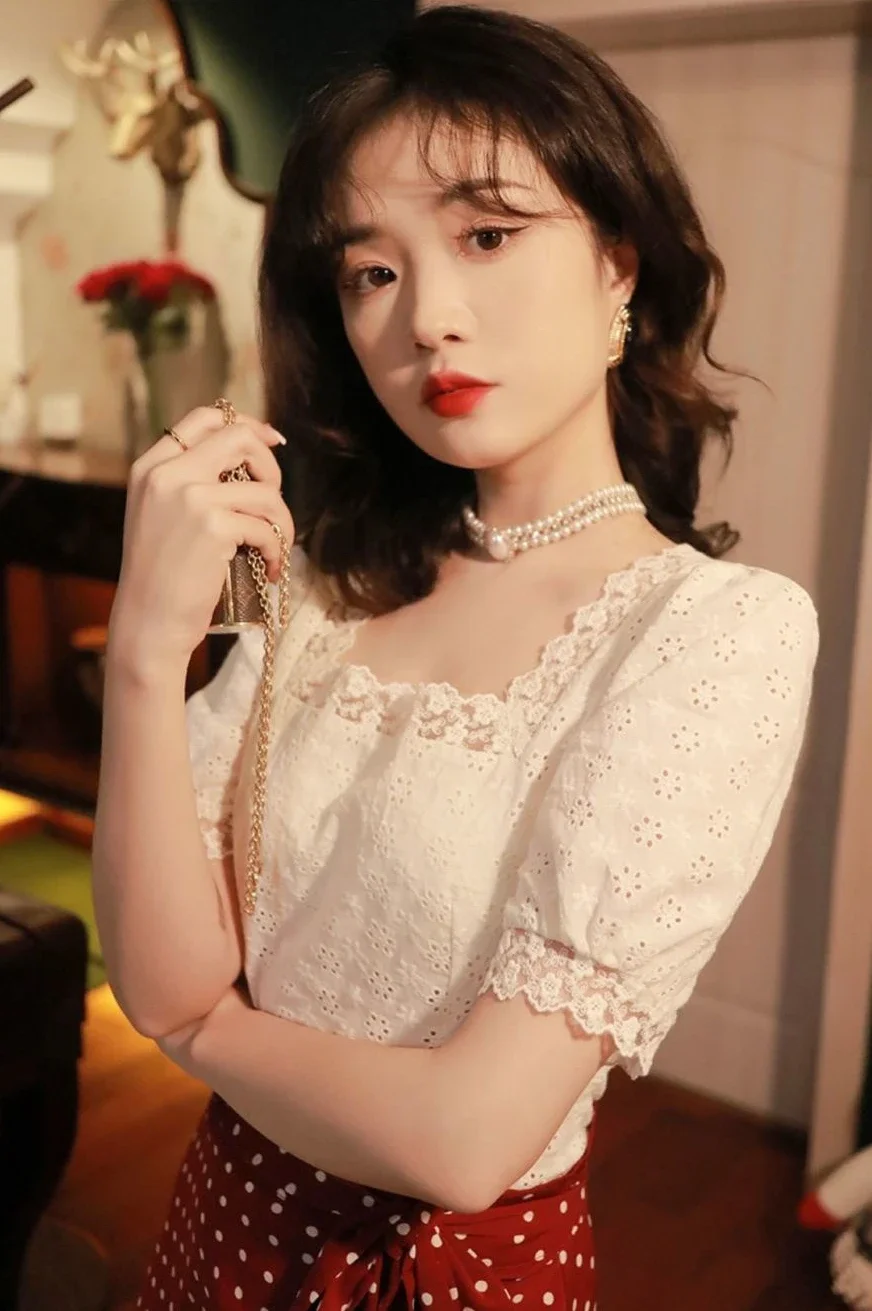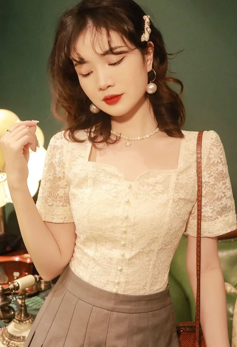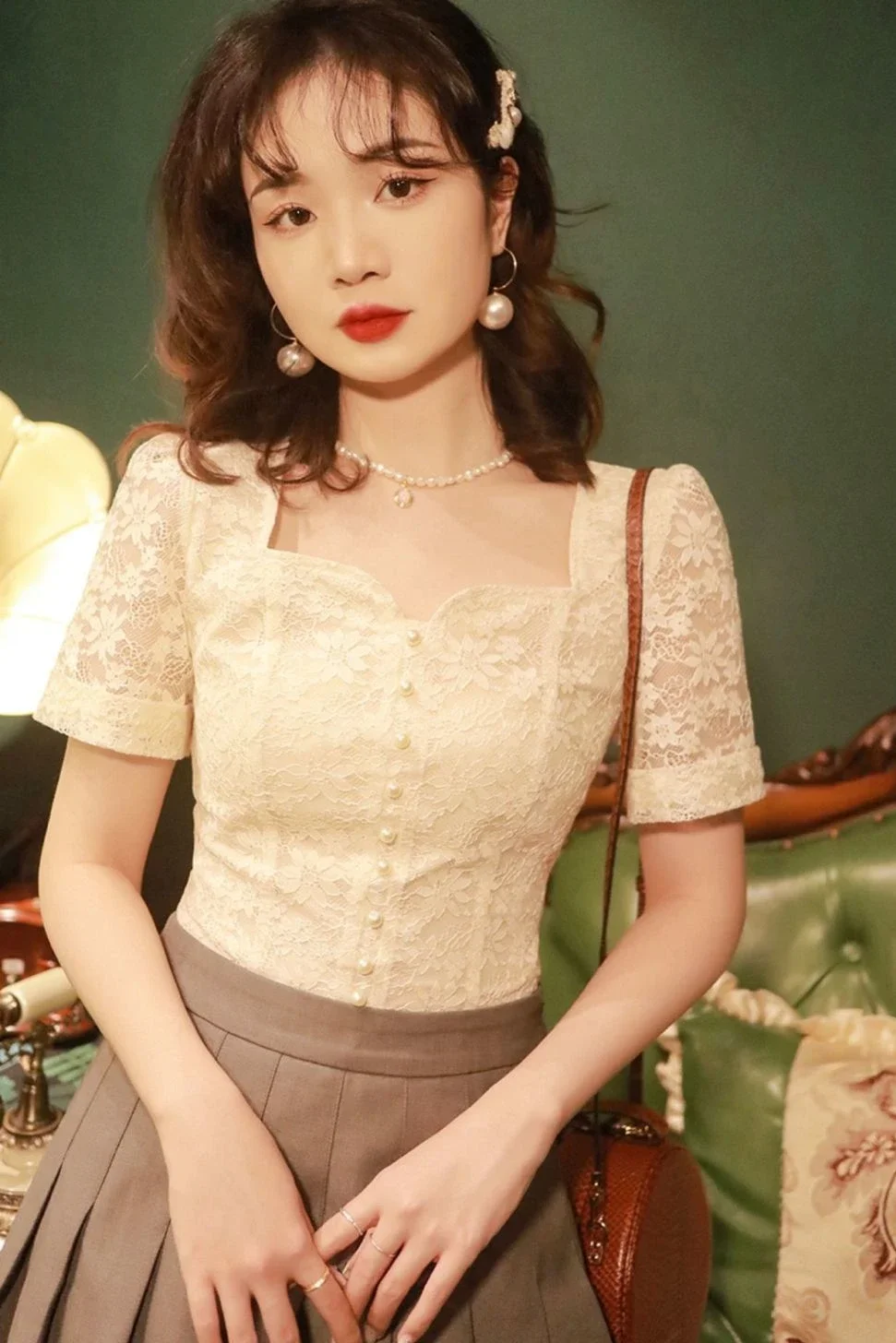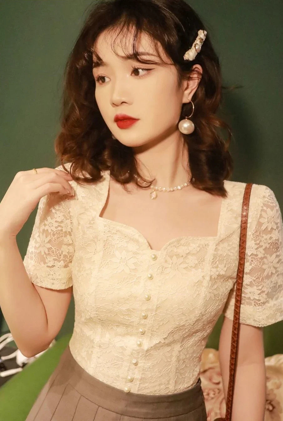 قمصان وبلوزات بأكمام قصيرة للنساء ، بلوزة جمالية عتيقة ، تطريز مثير ، أبيض ، ملابس شبابية ، جديد ، صيف ، من من من من من من من من من من القطن