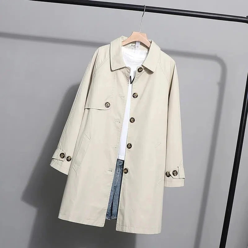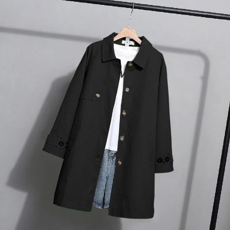 كوريا فضفاض المعتاد واحدة الصدر منتصف خندق معطف المرأة الكاكي الأسود منفضة معطف سترة واقية سيدة ملابس خارجية الربيع