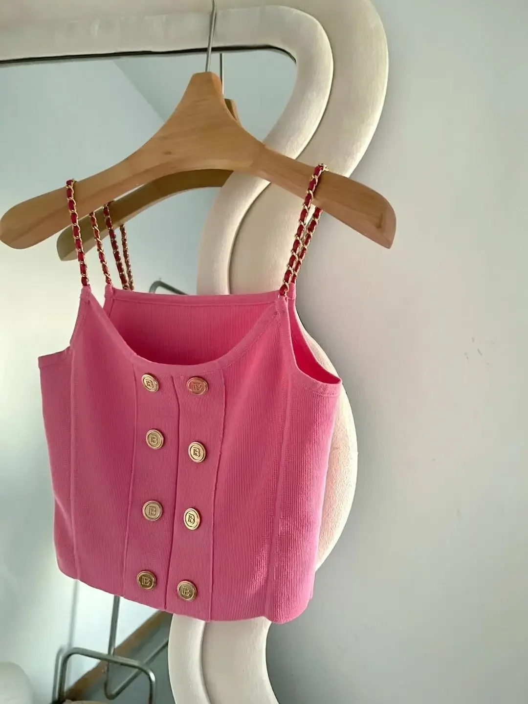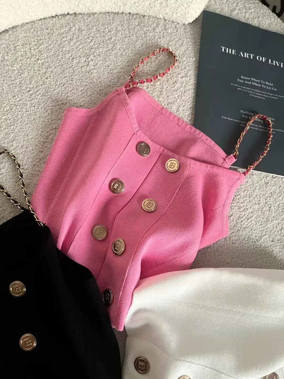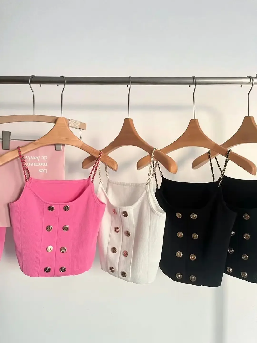 • تصميم مستوحى من شانيل:يتميز هذا القميص الداخلي بتصميم أنيق مستوحى من شانيل، وهو مثالي لأولئك الذين يبحثون عن لمسة من الفخامة في خزانة ملابسهم الصيفية. • مشبك معدني باهظ الثمن:يتميز هذا القميص الداخلي بإبزيم معدني باهظ الثمن، ويضيف المزيد من المعلومات