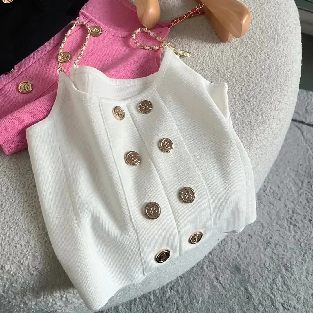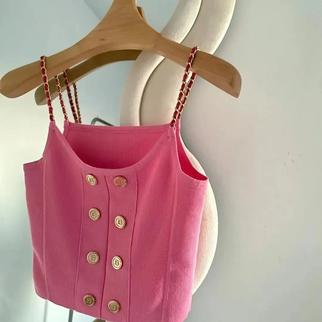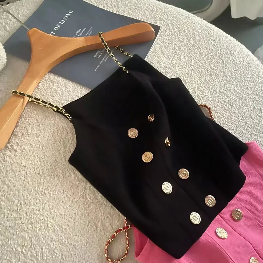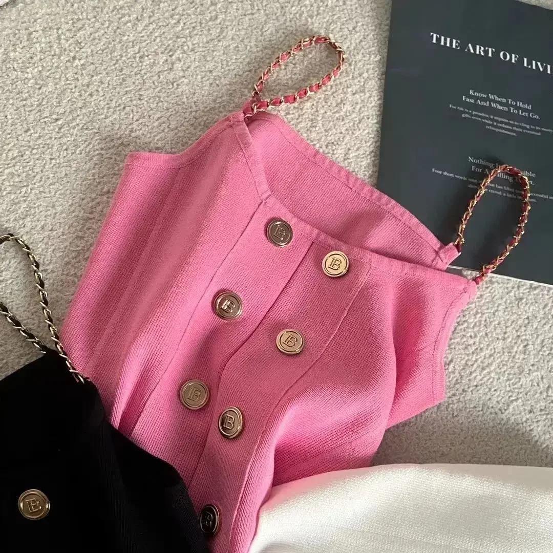 مثير حزام سترة قصيرة تناسب الملابس الداخلية الفاخرة مشبك معدني تصميم الصيف نمط جديد ضوء البوليستر الألياف مزيج سترة أعلى