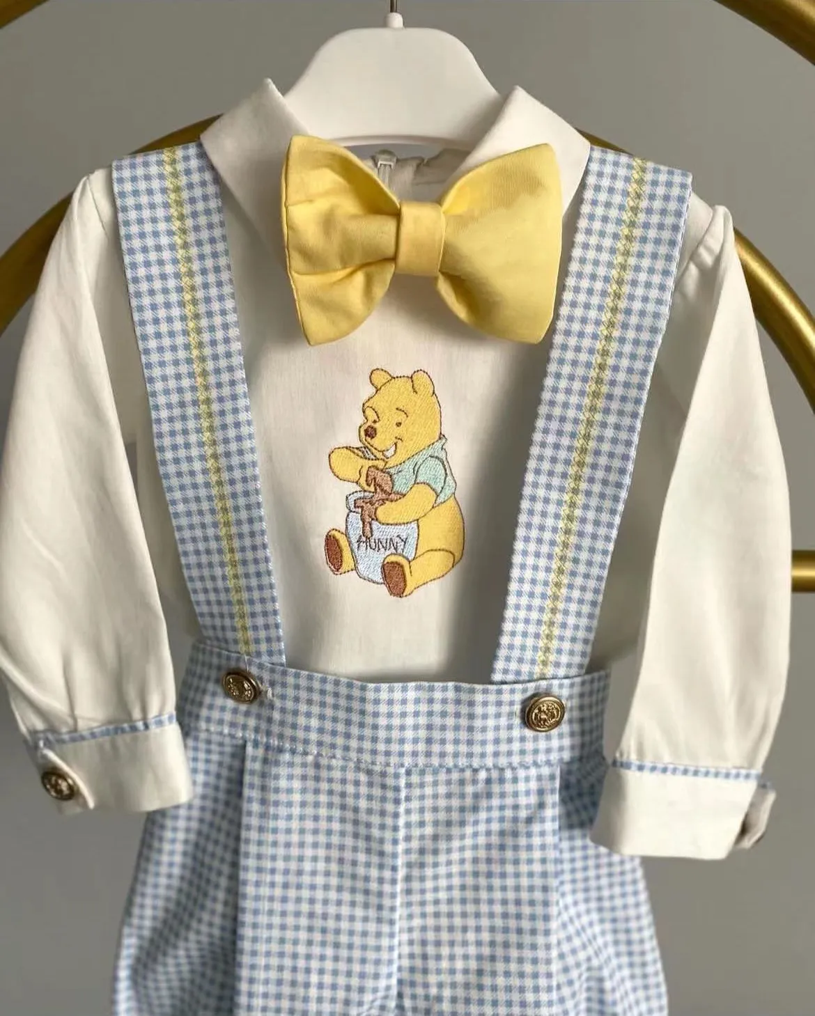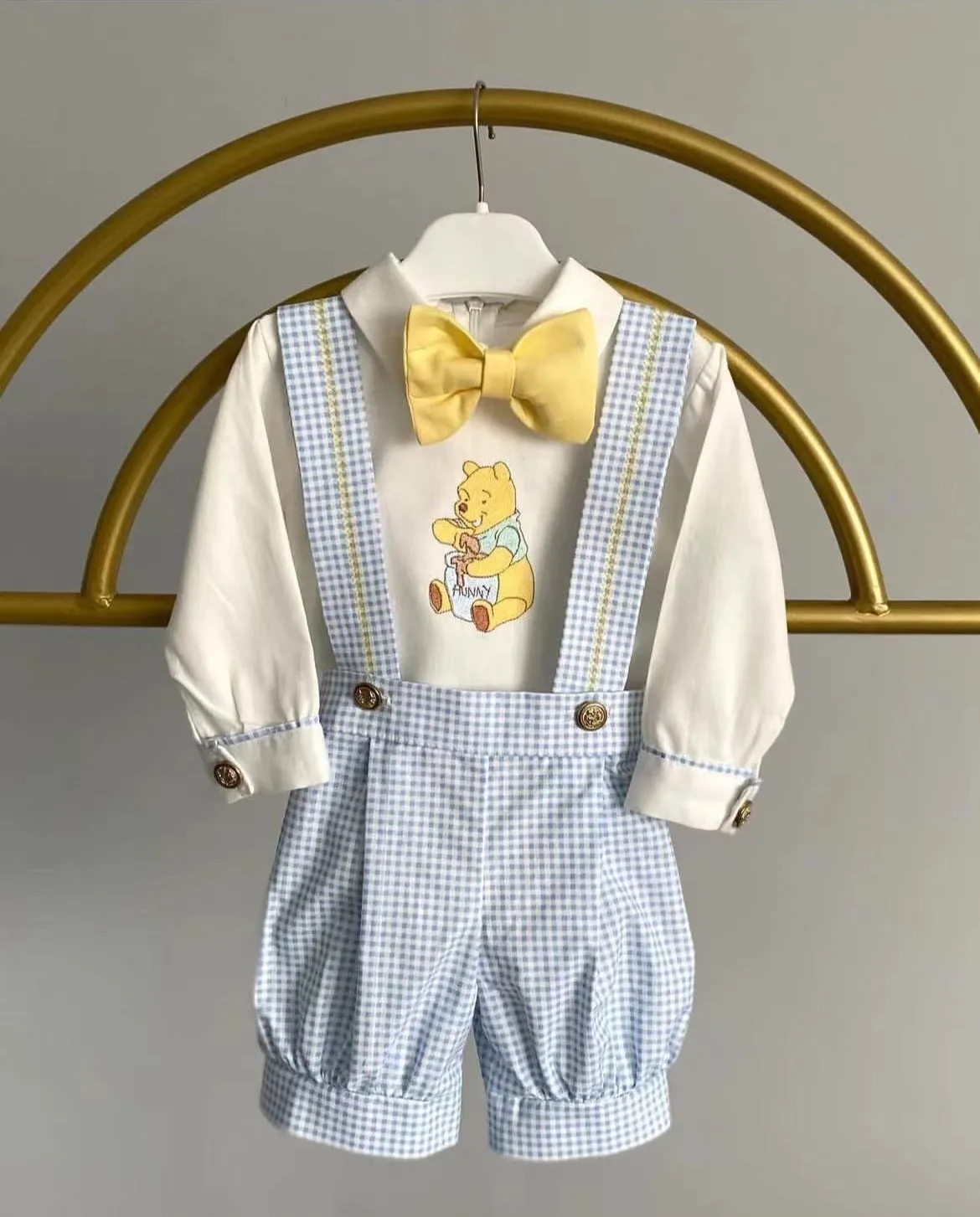 مجموعة كاكي عتيقة مطرزة على شكل دب للربيع والصيف للأطفال الصغار للتصوير الفوتوغرافي لعيد الميلاد غير الرسمي