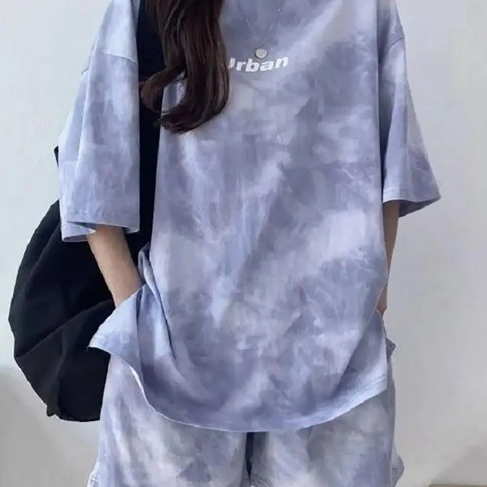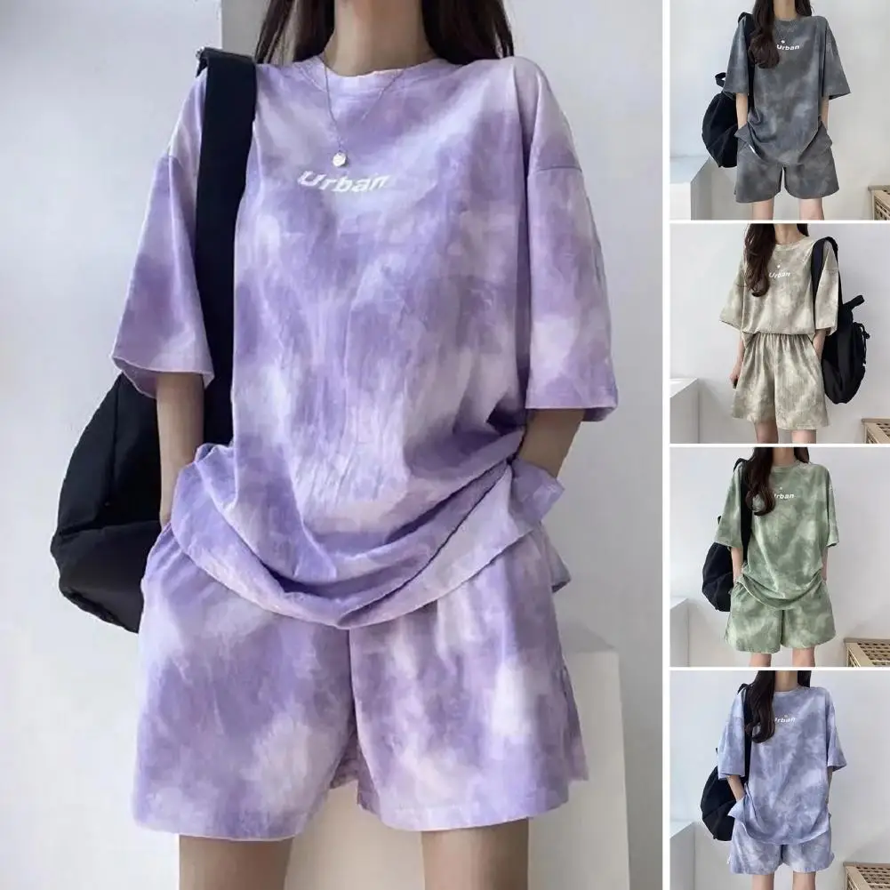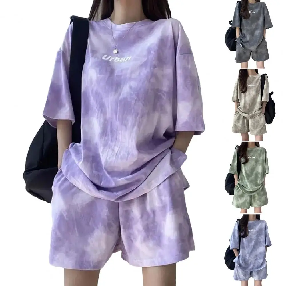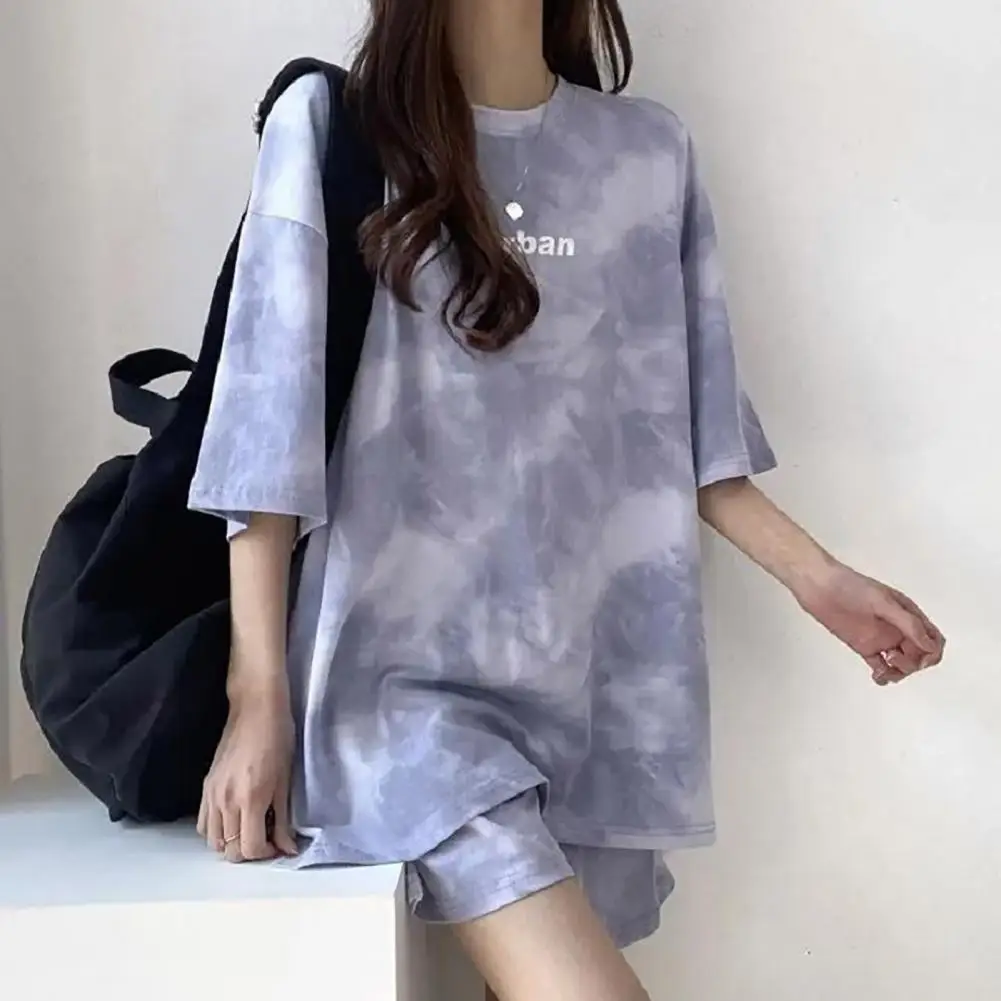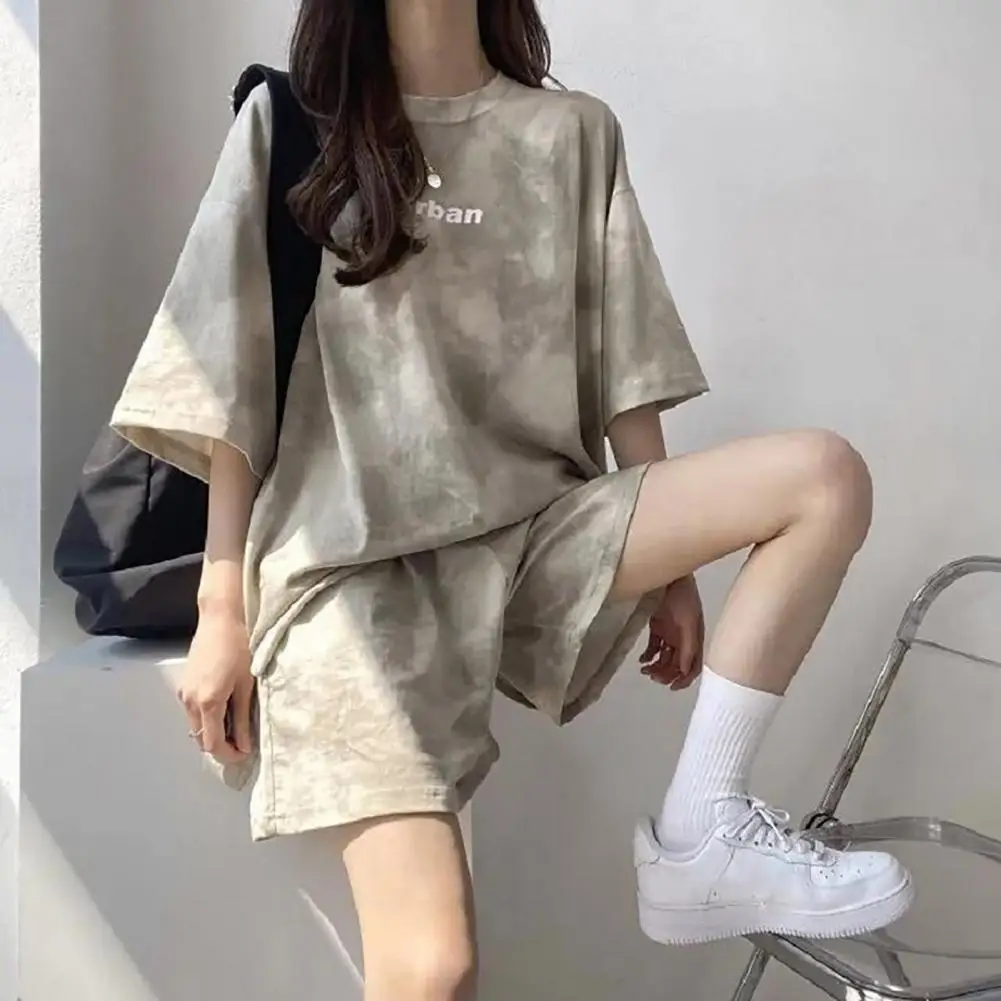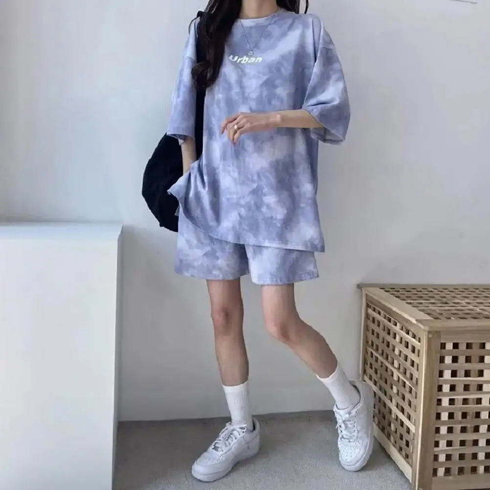 ملابس رياضية نسائية مصبوغة برباط ، طقم تي شيرت وشورت ، خصر مرن ، بلوزة فضفاضة ، سراويل صغيرة ، ملابس غير رسمية