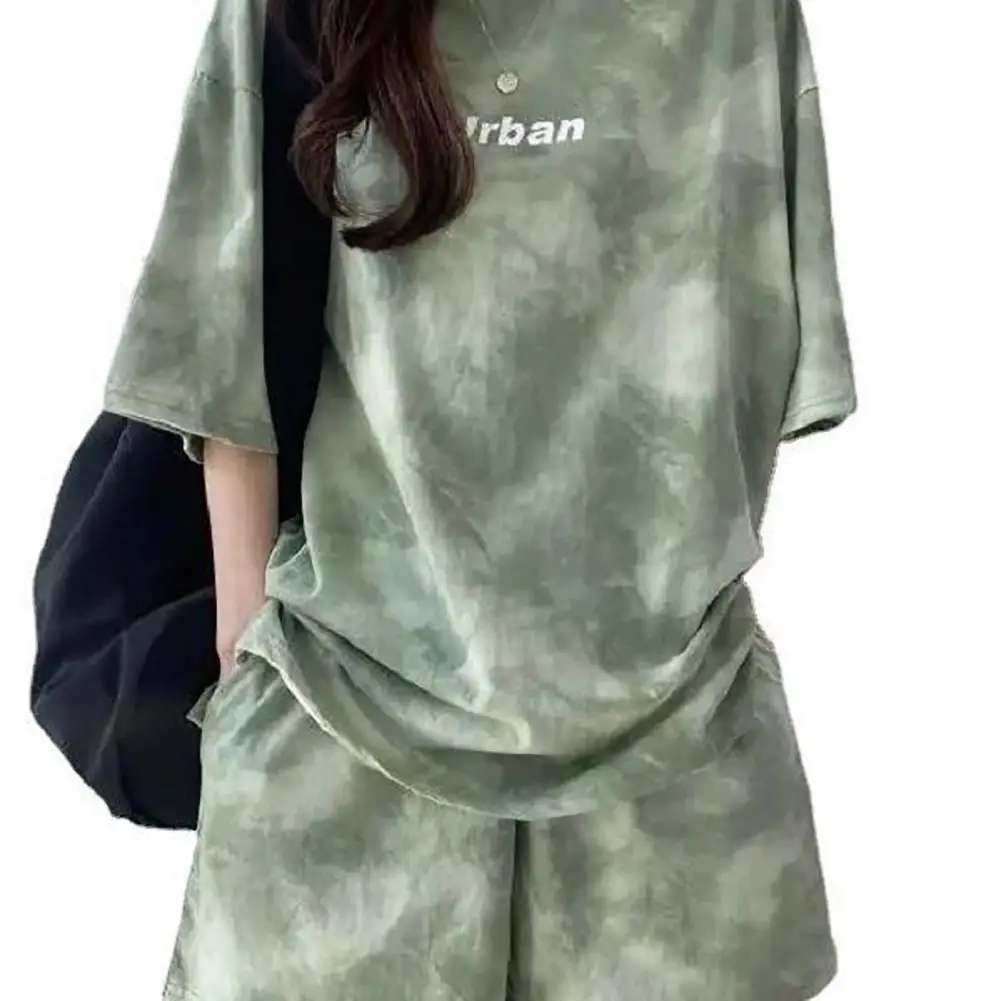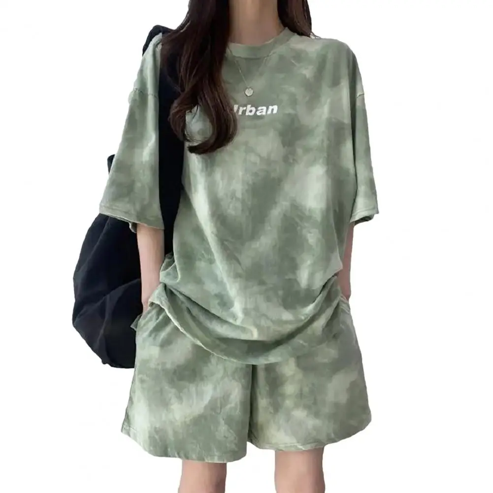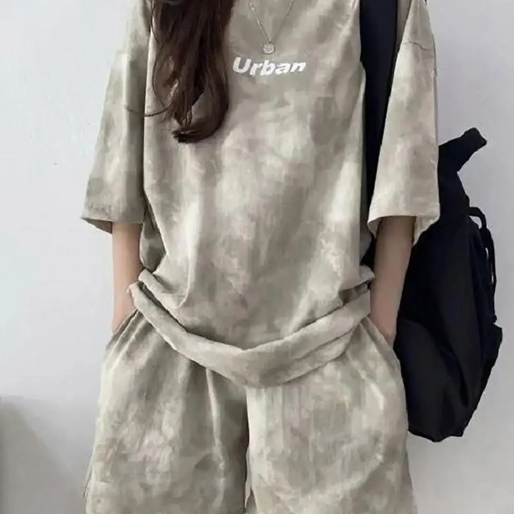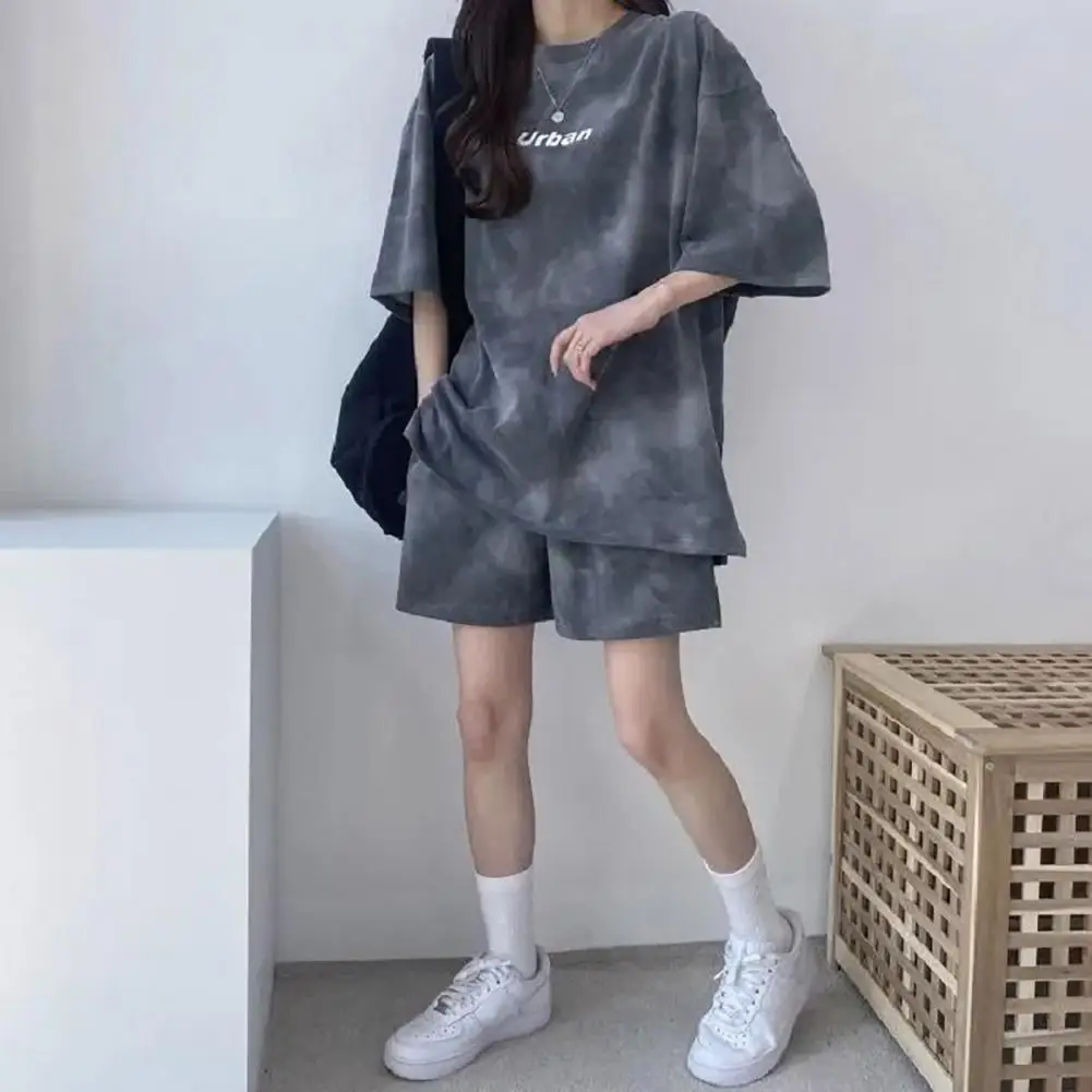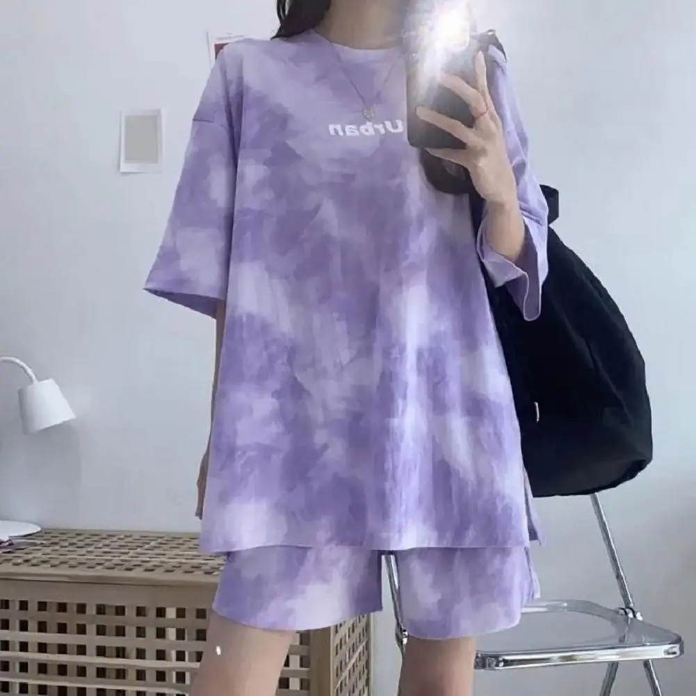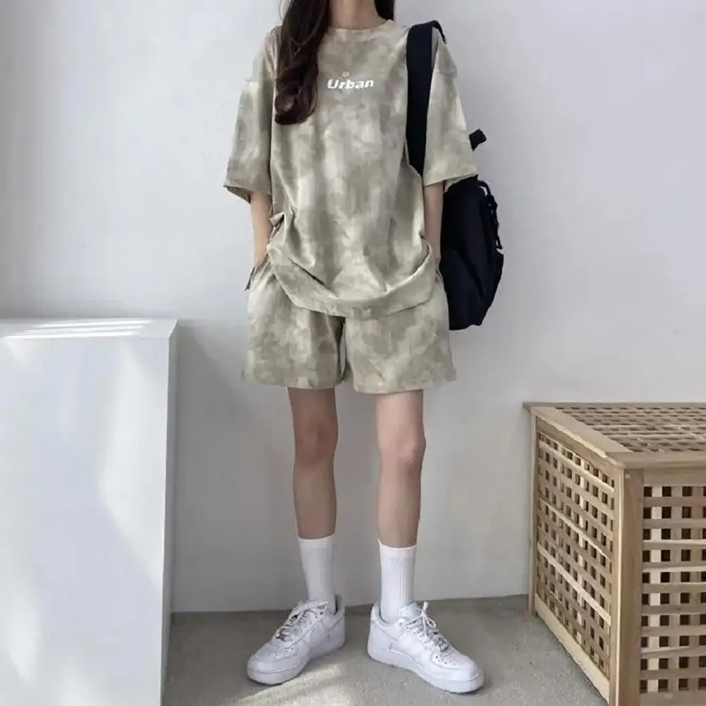 ملابس رياضية نسائية مصبوغة برباط ، طقم تي شيرت وشورت ، خصر مرن ، بلوزة فضفاضة ، سراويل صغيرة ، ملابس غير رسمية
