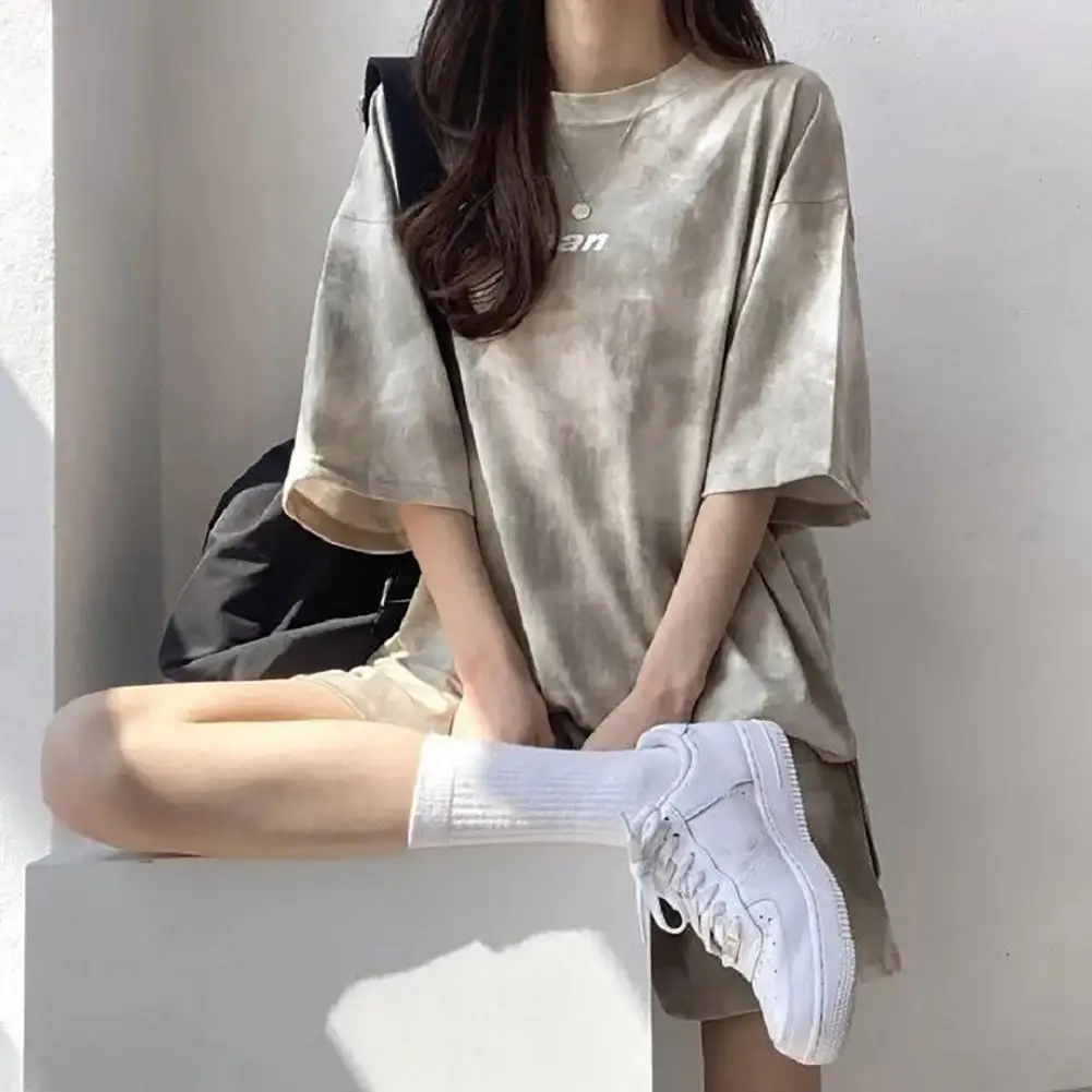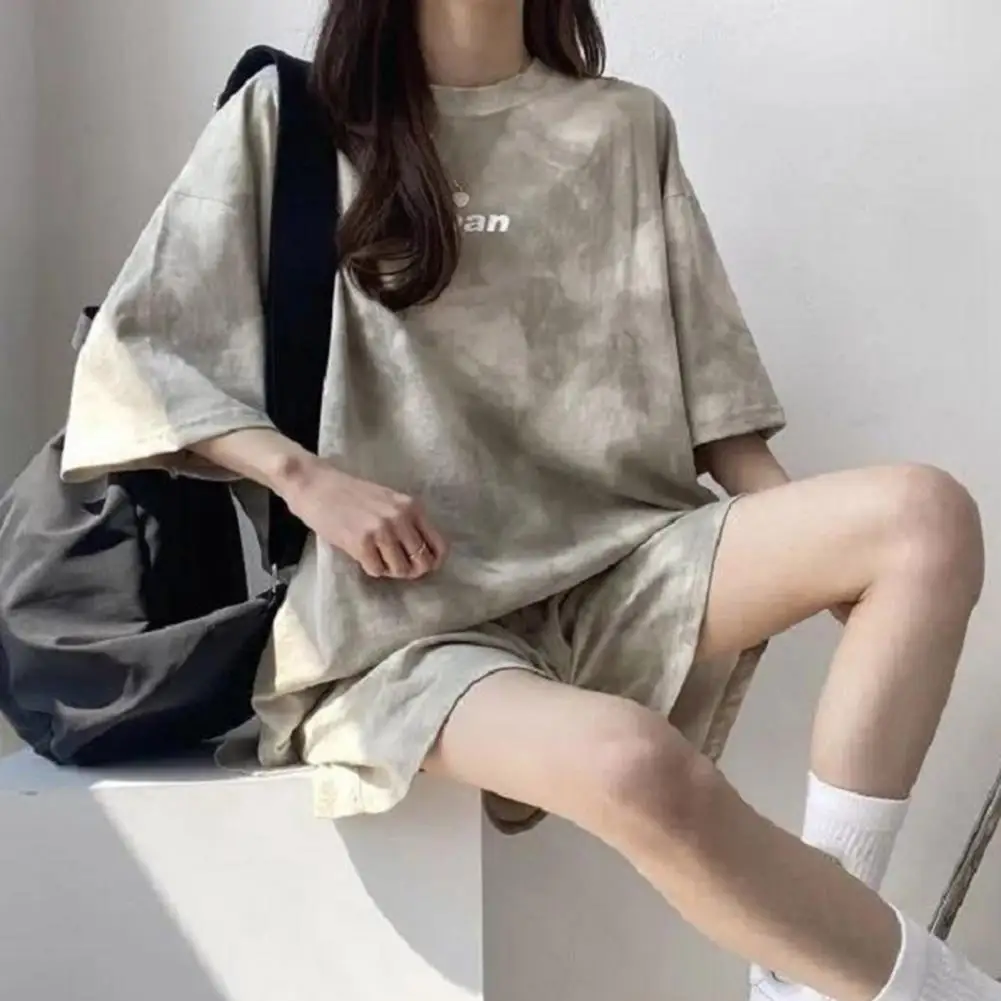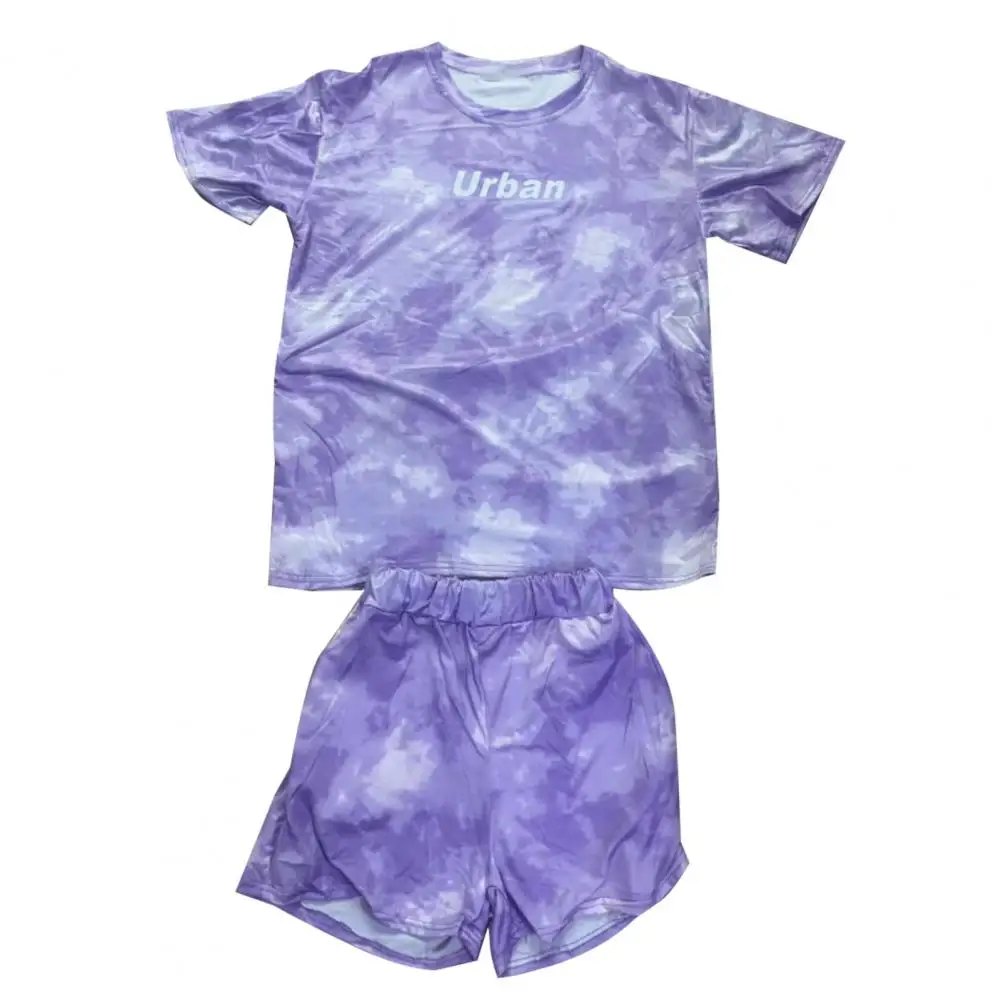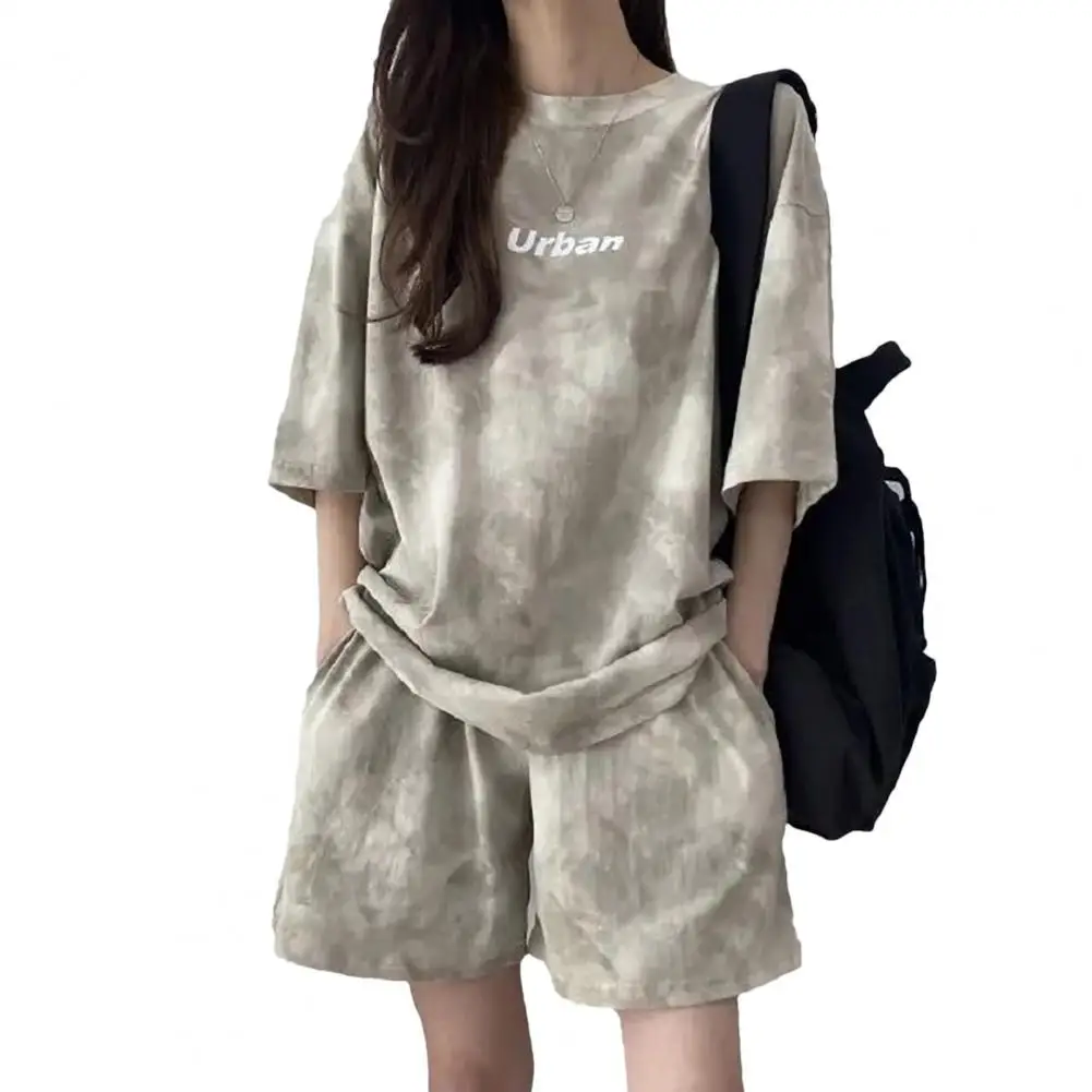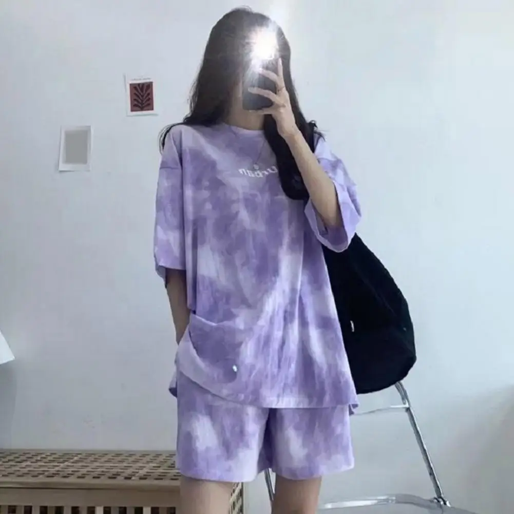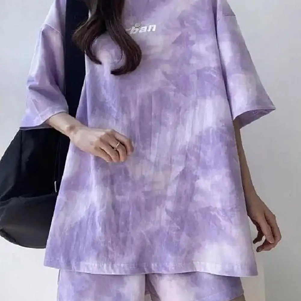 ملابس رياضية نسائية مصبوغة برباط ، طقم تي شيرت وشورت ، خصر مرن ، بلوزة فضفاضة ، سراويل صغيرة ، ملابس غير رسمية