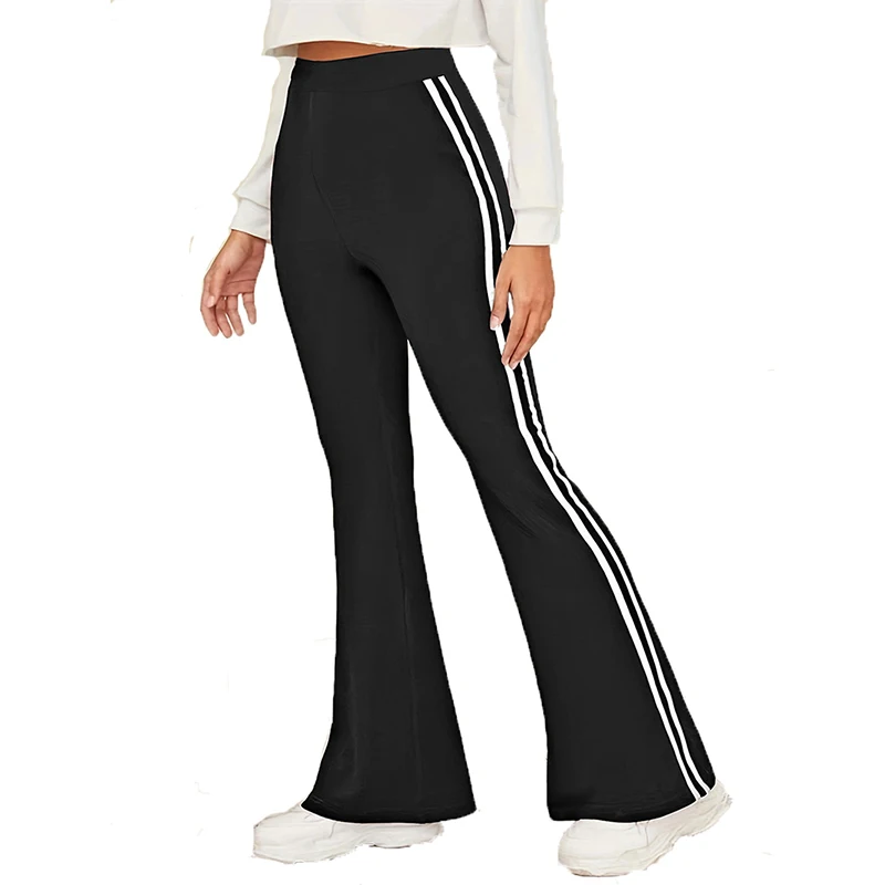 1 قطع أسود أحمر المرأة مرونة لينة الجانب مخطط واسعة الساق السراويل اليوغا السراويل متوهج السراويل الرياضية السراويل اللياقة البدنية السراويل الرياضية