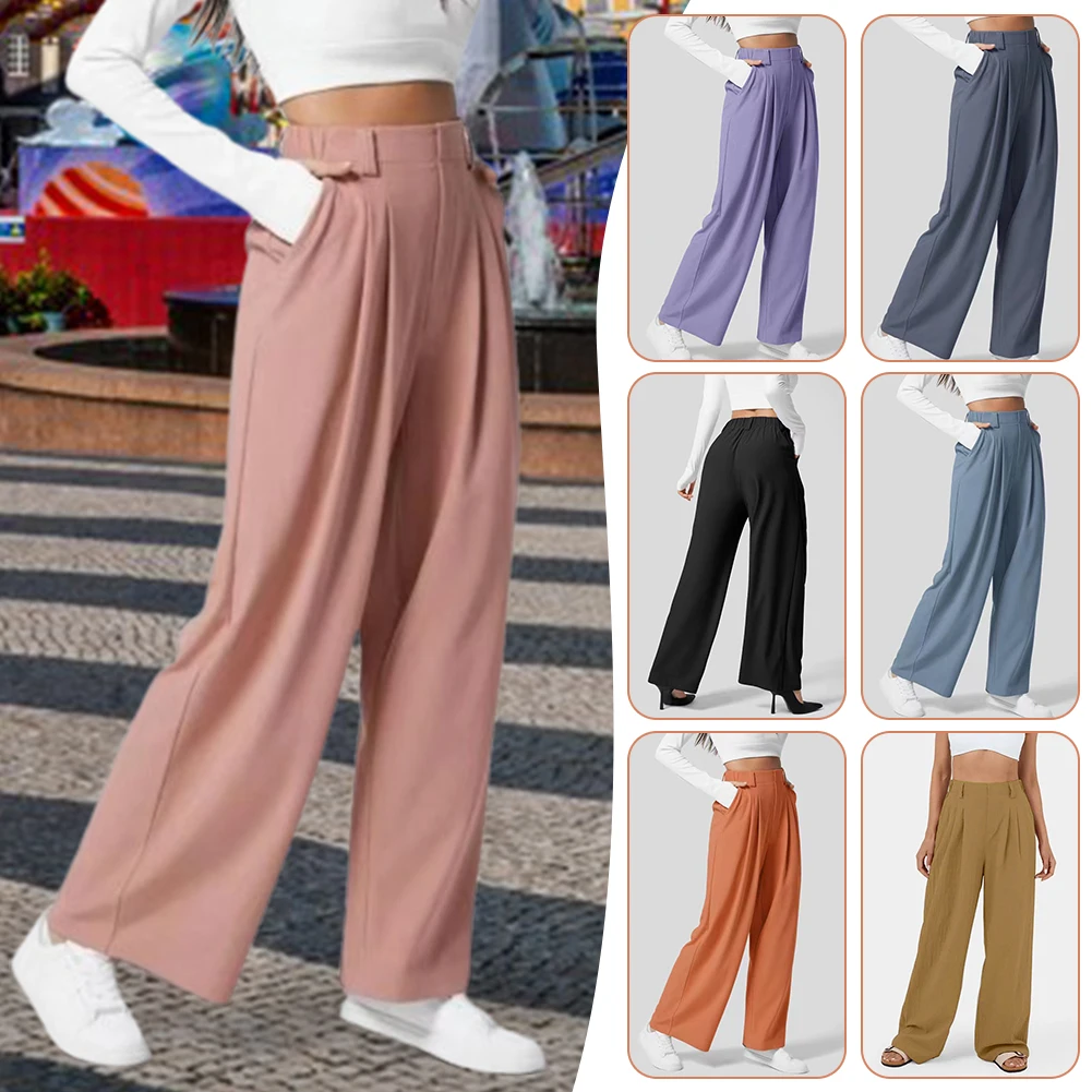 2024 سراويل ترفيهية مريحة صديقة للبشرة سراويل نسائية عالية الخصر بنطال ذو قصة أرجل واسعة ناعمة وخفيفة الوزن للنساء ملابس يومية