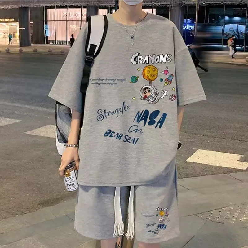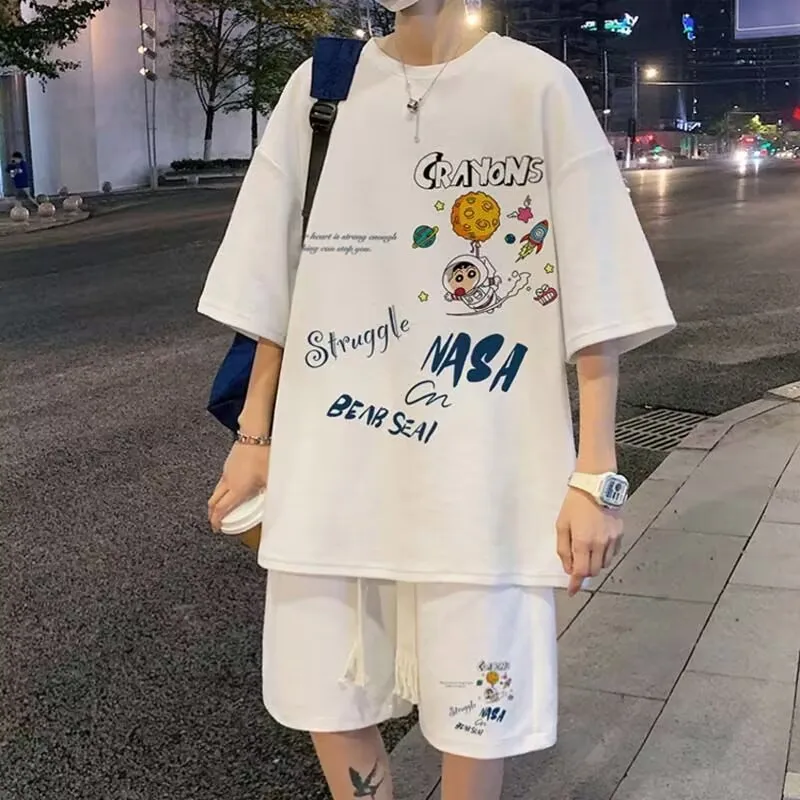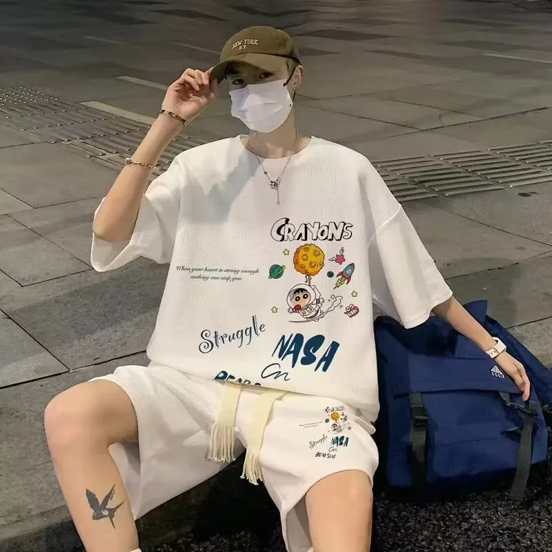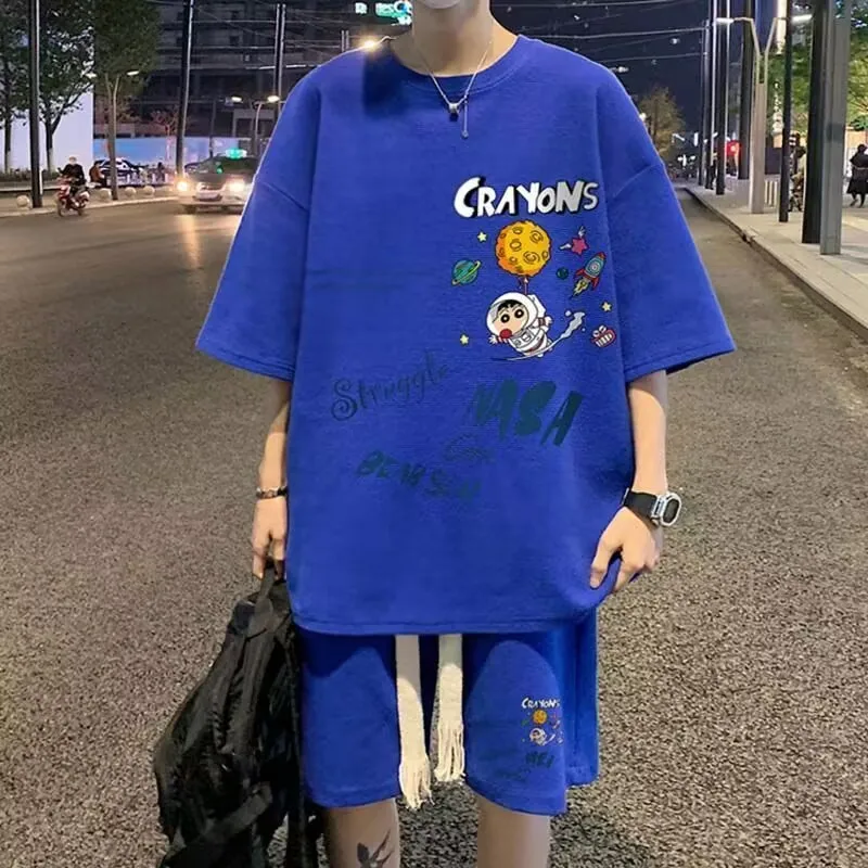 2025 الرجال الصيف قصيرة الأكمام والسراويل القصيرة قطعتين الرياضة ملابس رياضية كاجوال الرجال مريحة بارد السراويل المتضخم تي شيرت مجموعة