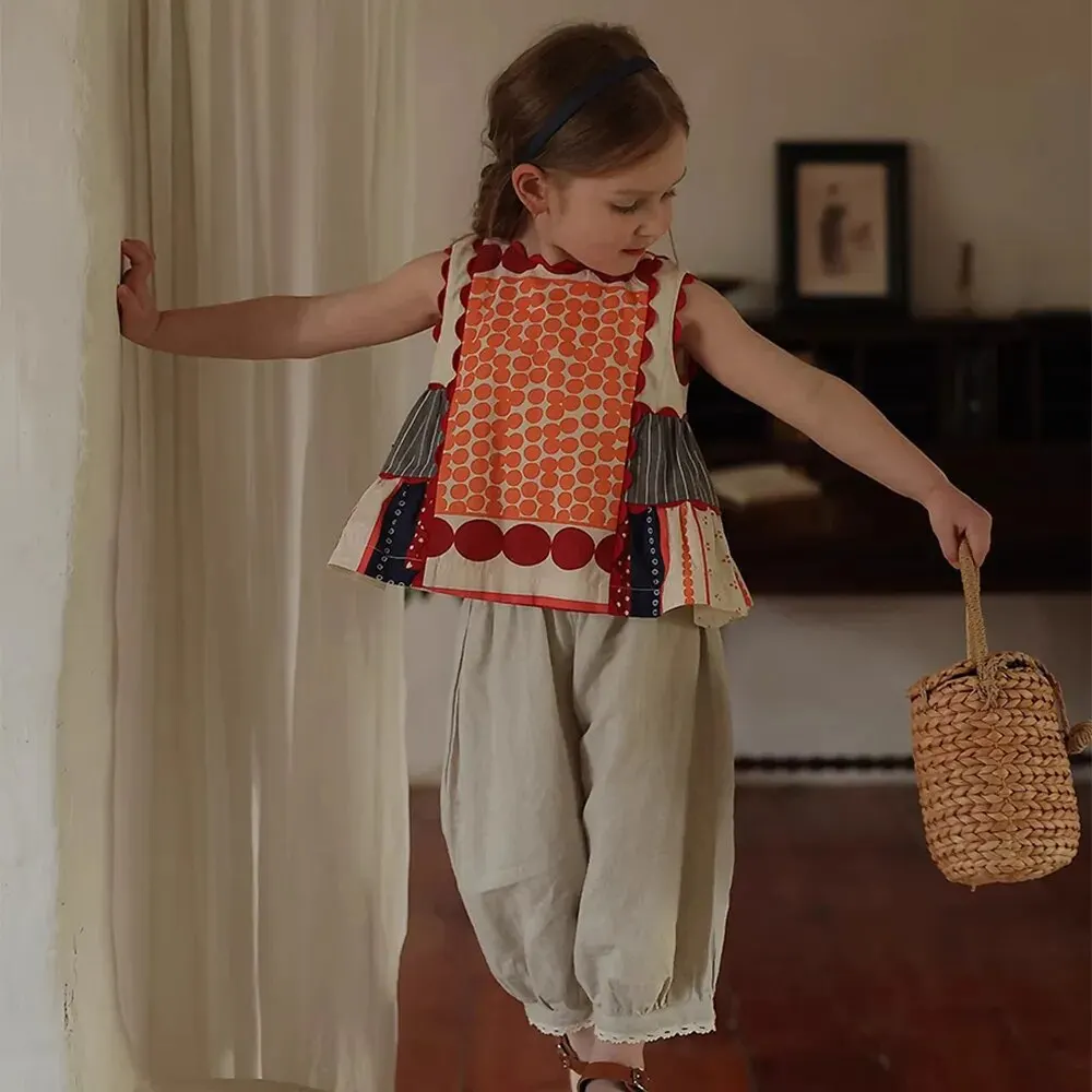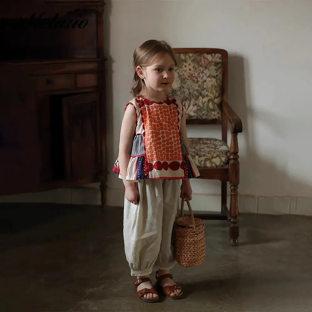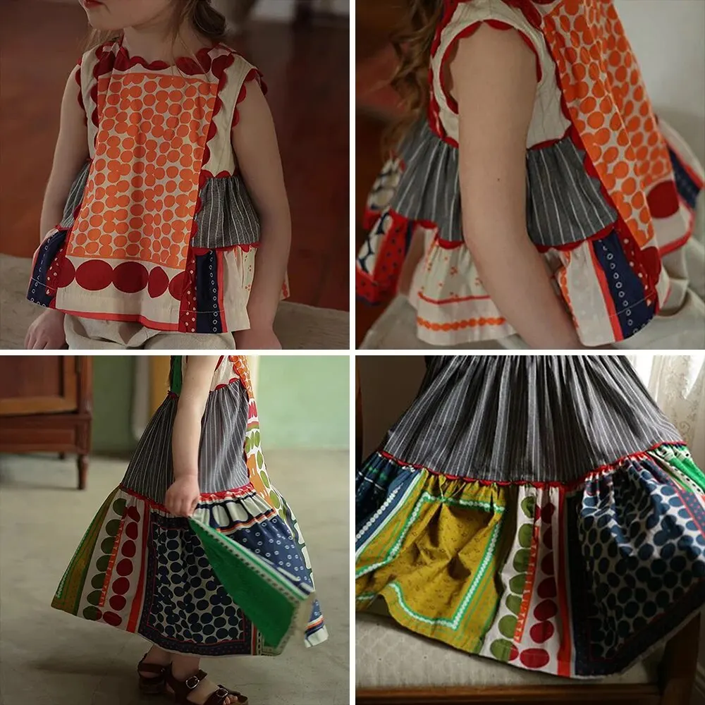 Bear Leader-فستان بناتي بدون أكمام هندسي ، رقبة مستديرة ، متعدد الألوان ، مريح ، غير رسمي ، موضة ، صيف