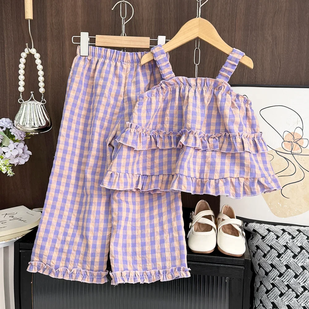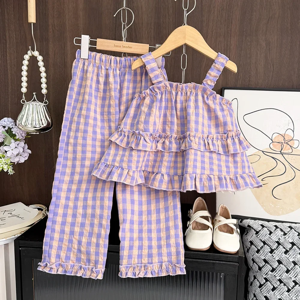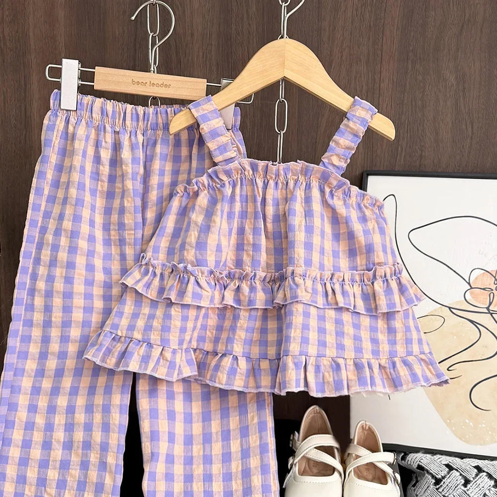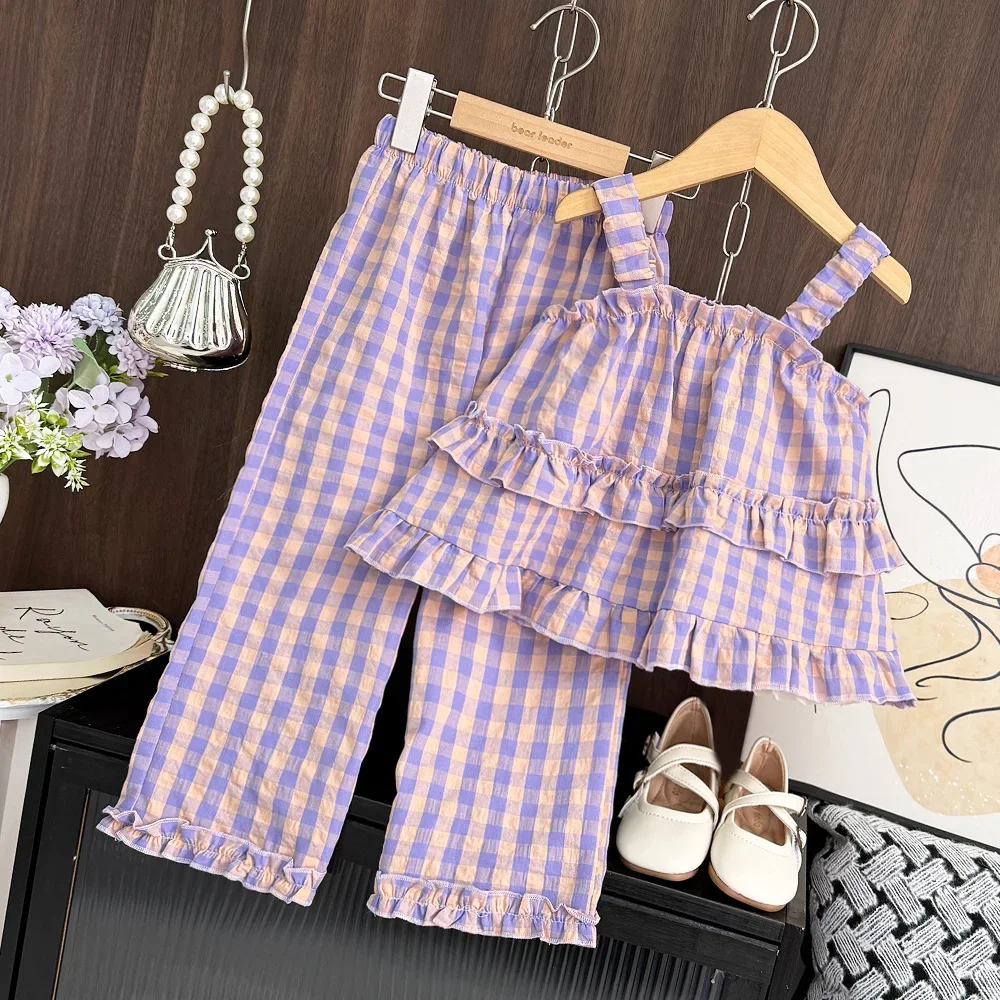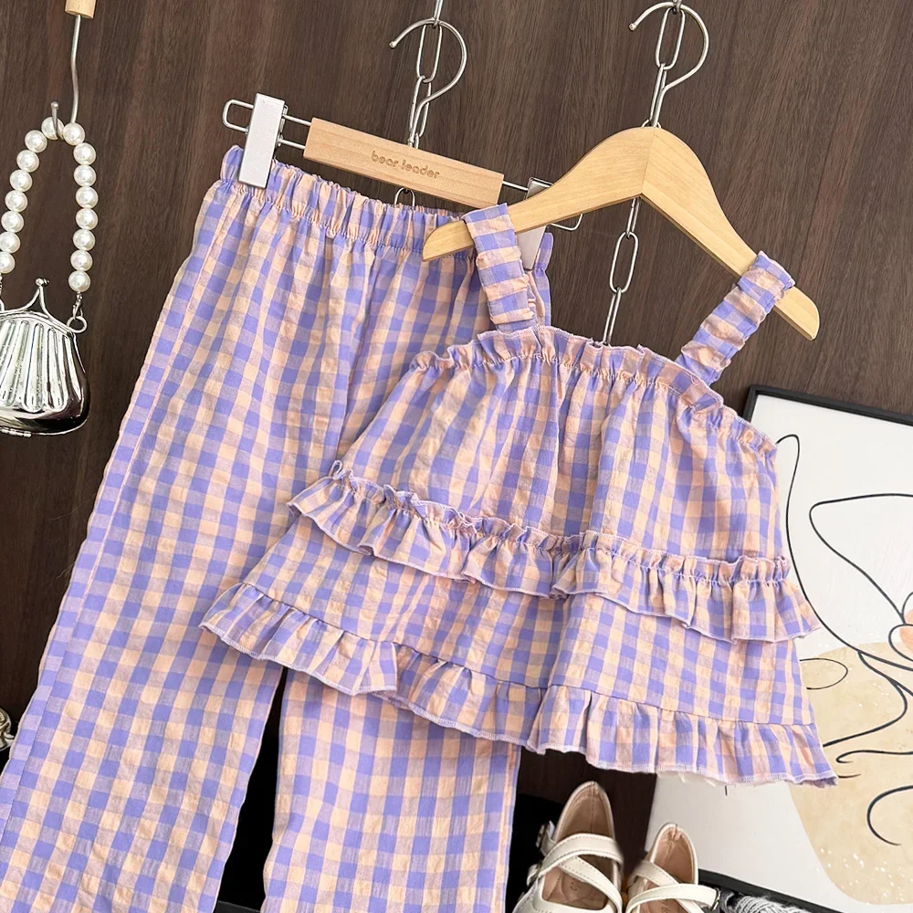 Bear Leader ملابس فتاة لطيفة لعيد الفصح عصرية وبسيطة صيفية بدون أكمام منقوشة متباينة مطبوعة + بنطلون طقم مكون من قطعتين
