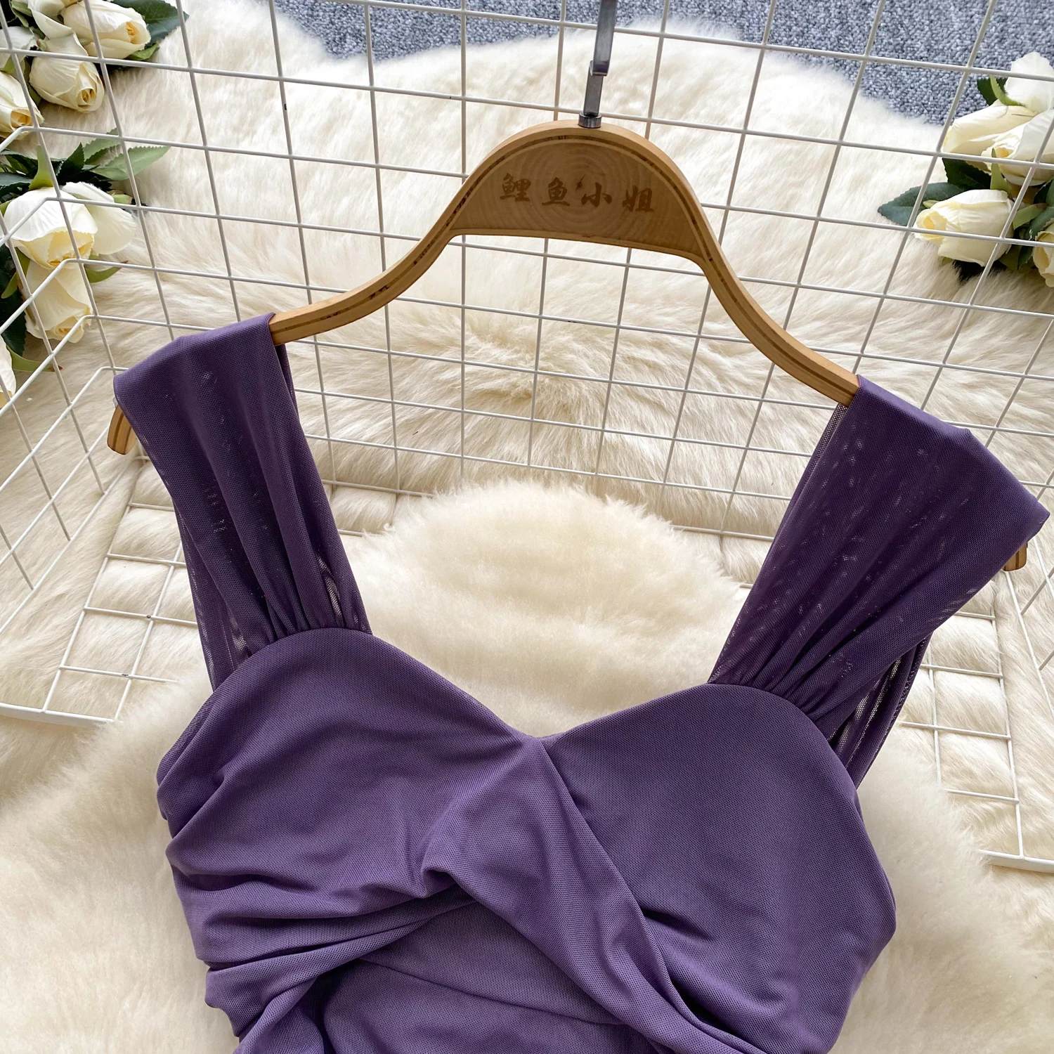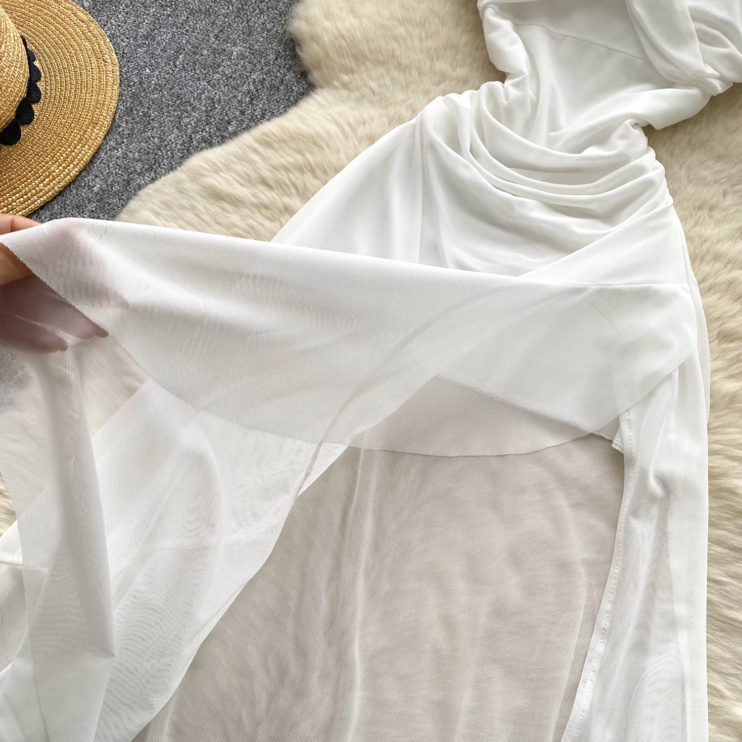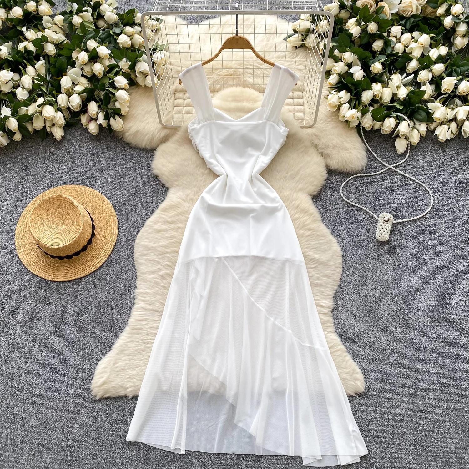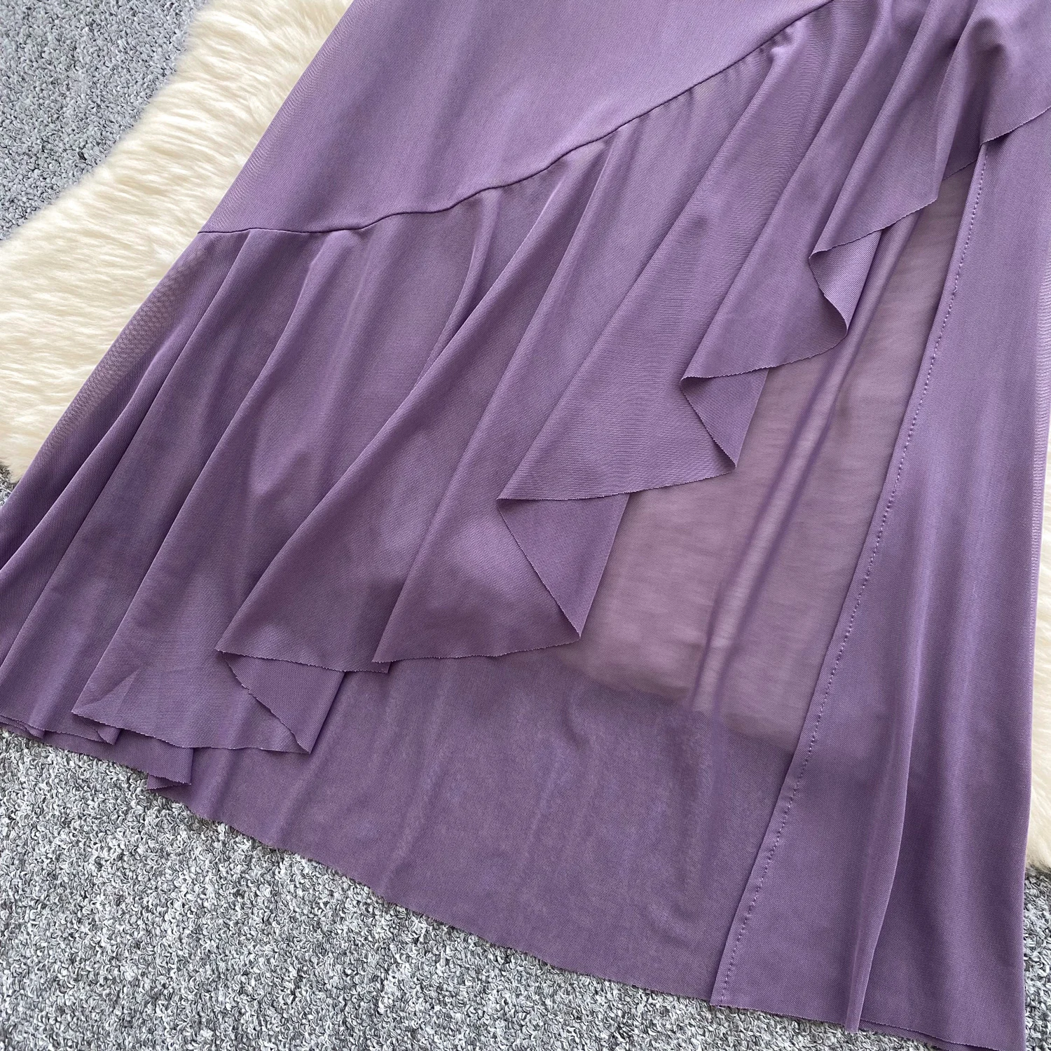 SINGREINY 2025 فرنسا شبكة فستان طويل المرأة حزام الصليب مطوي نحيل تصميم الصيف موضة غير النظامية الكشكشة فستان عطلة