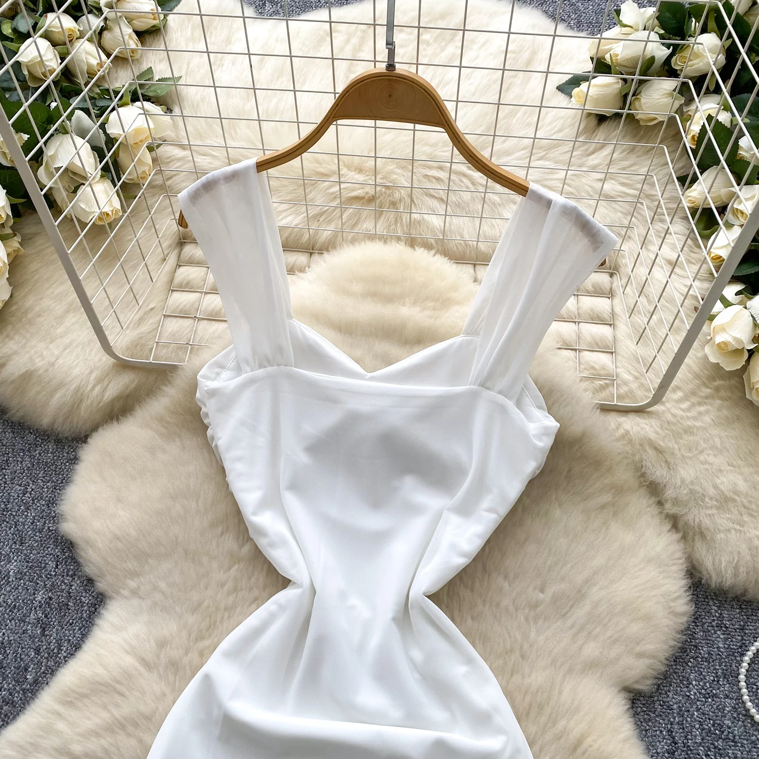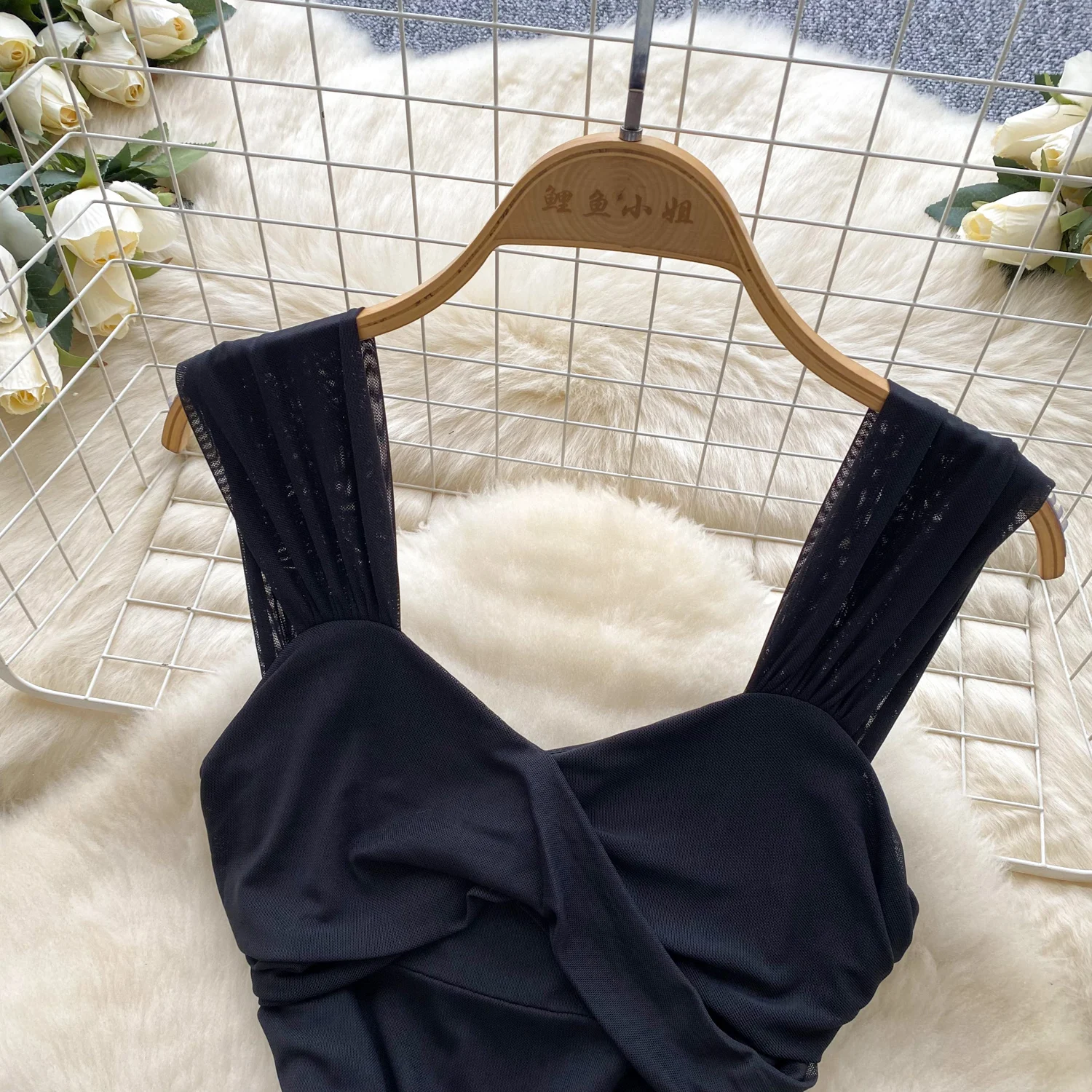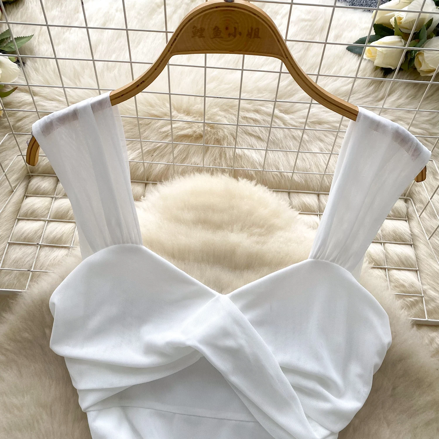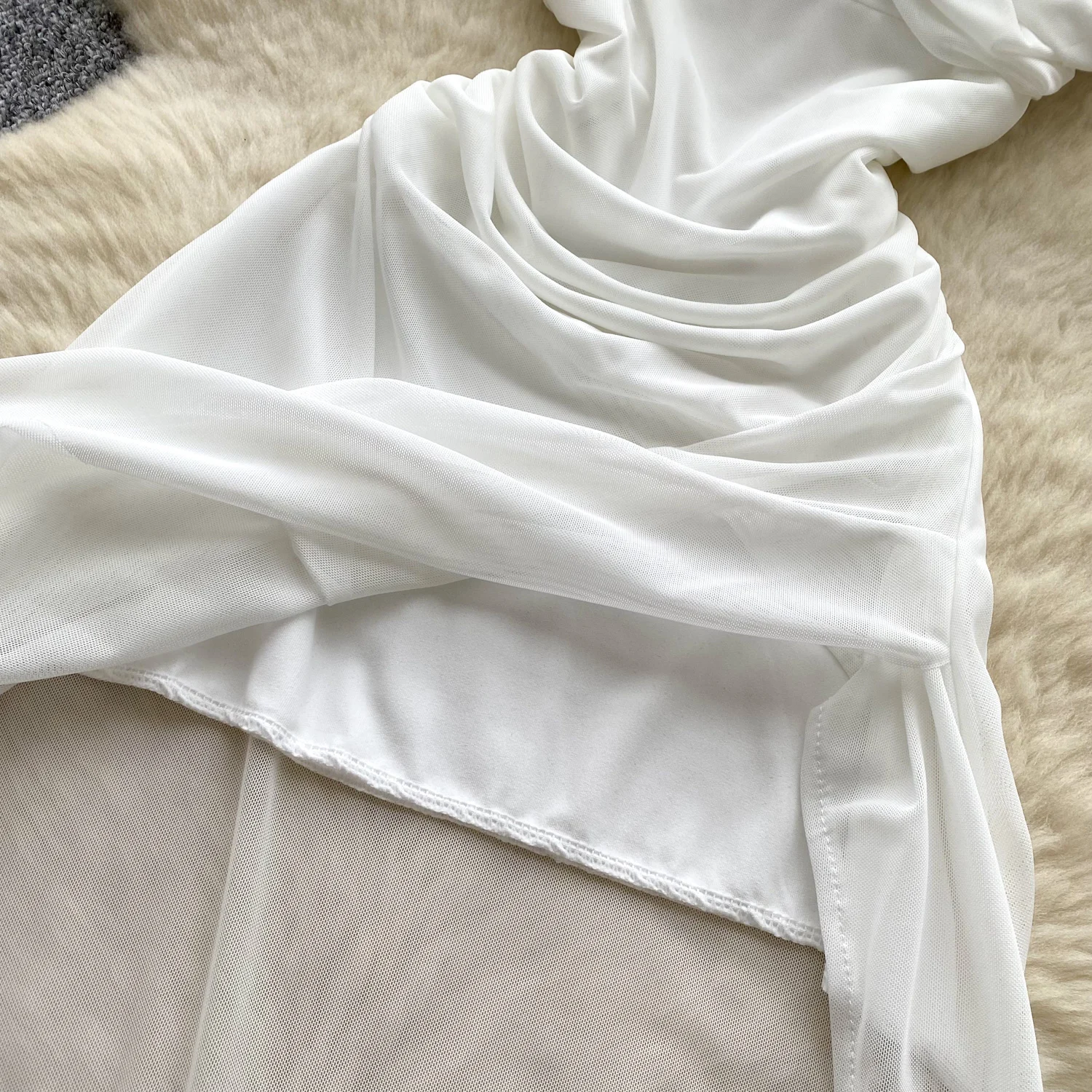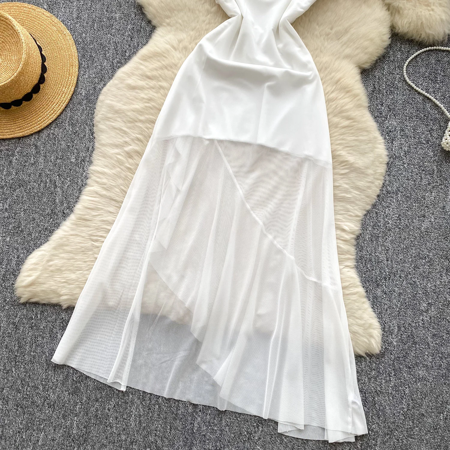 SINGREINY 2025 فرنسا شبكة فستان طويل المرأة حزام الصليب مطوي نحيل تصميم الصيف موضة غير النظامية الكشكشة فستان عطلة