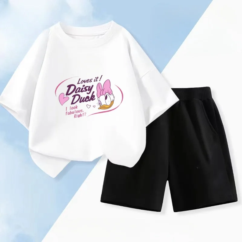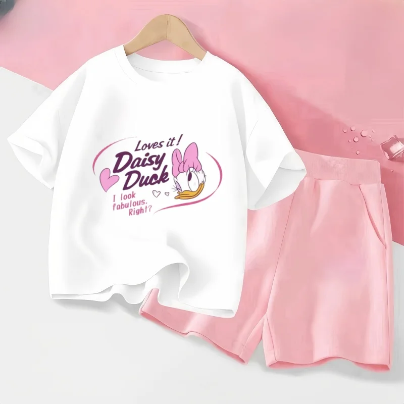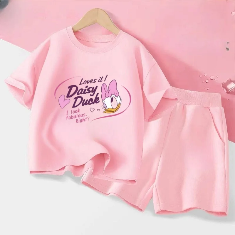 Summer Baby Girl Boy Clothes Set Children Disney Daisy Printing T-shirts and Shorts Two Pieces Suit Kid Short Sleeve Tracksuit